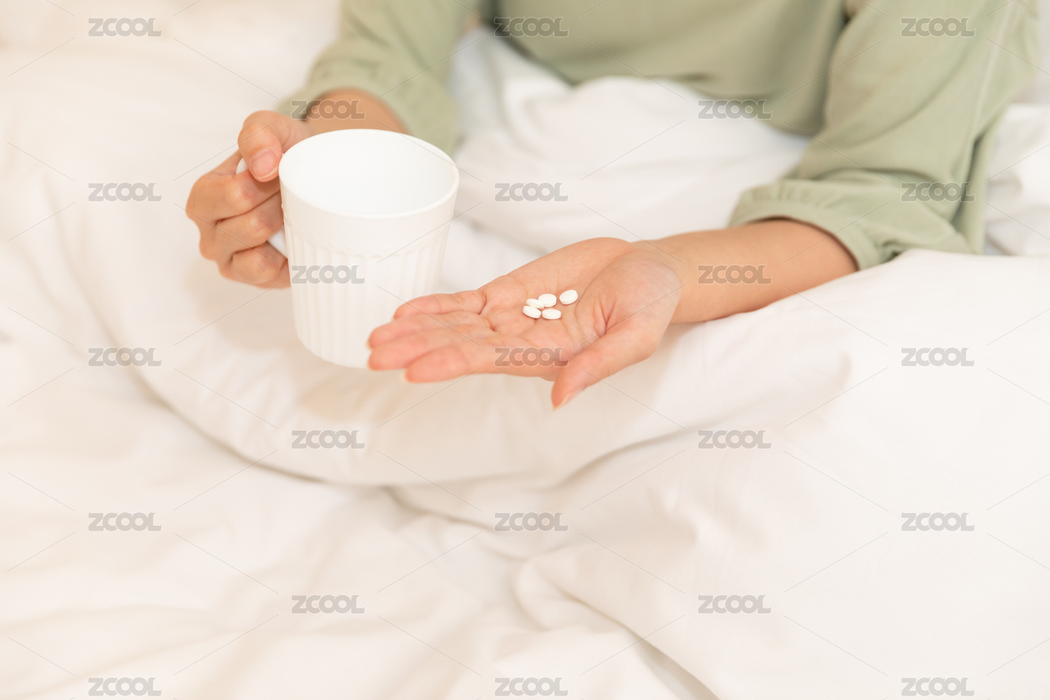 一手拿药片一手拿水杯准备吃药手部特写