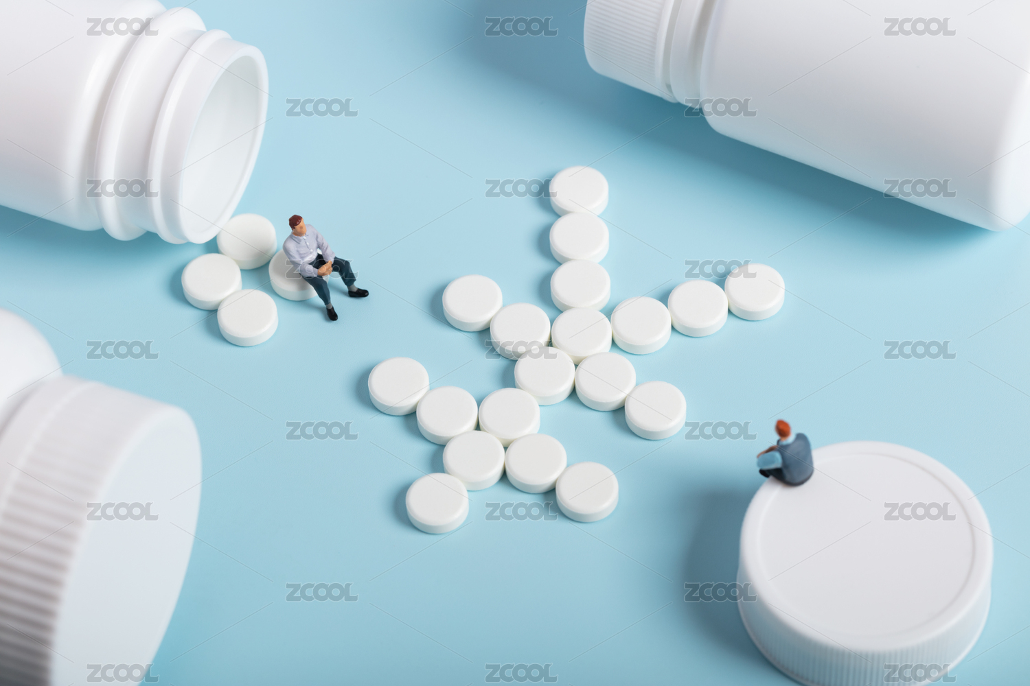 微缩创意白色药片组成的货币符号