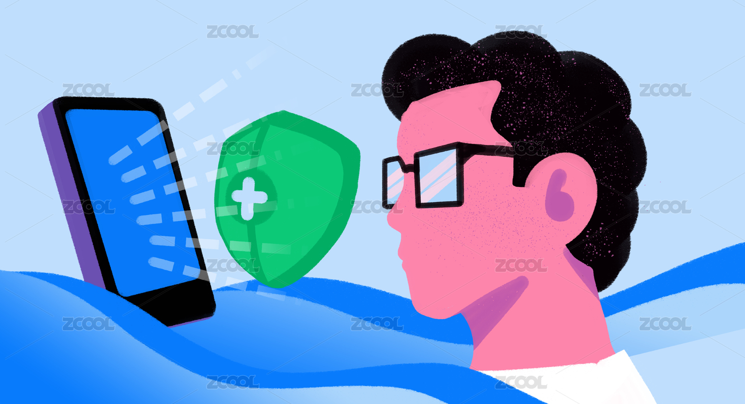 世界爱眼日眼科医疗保健手机预约插画海报