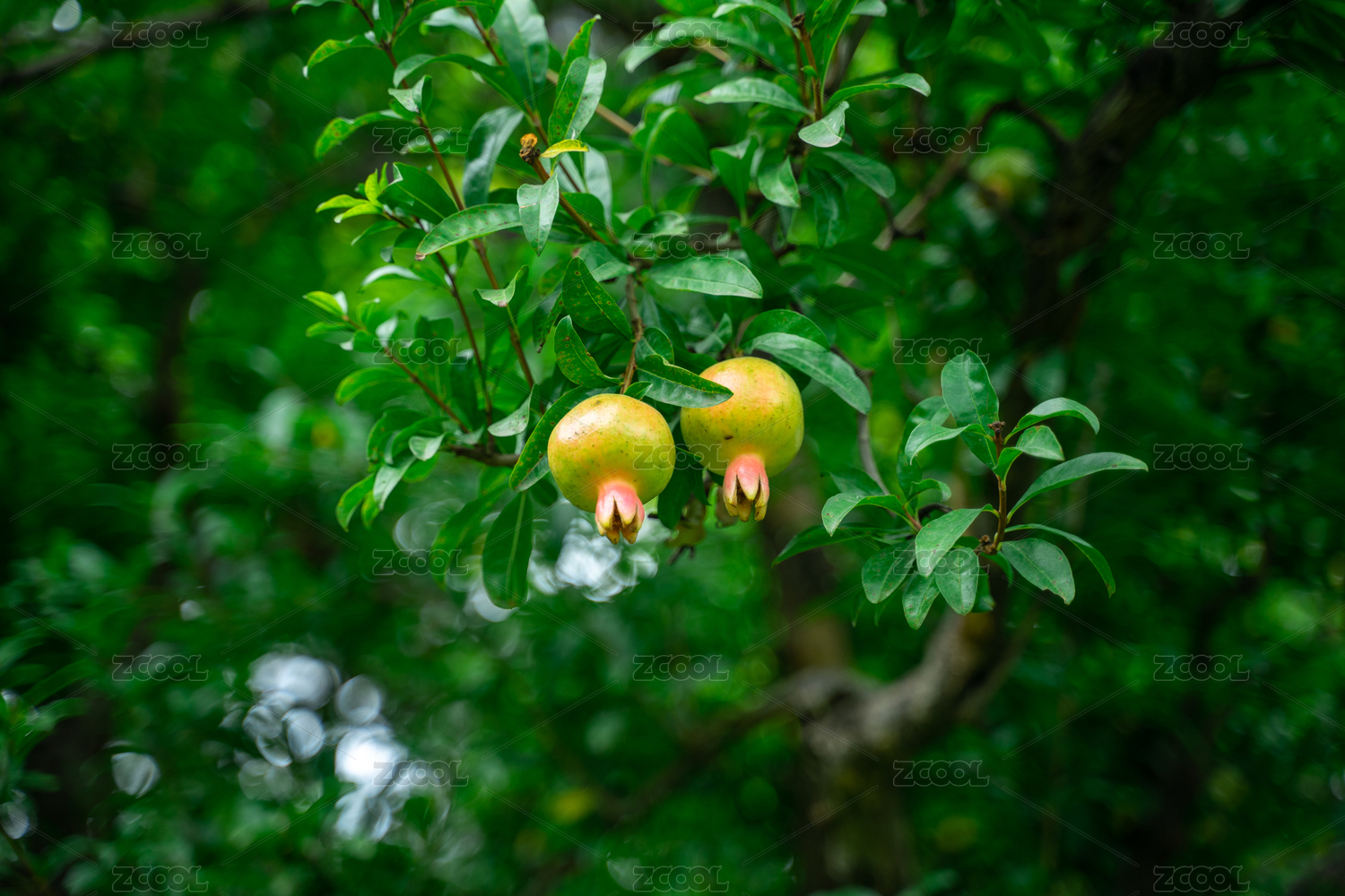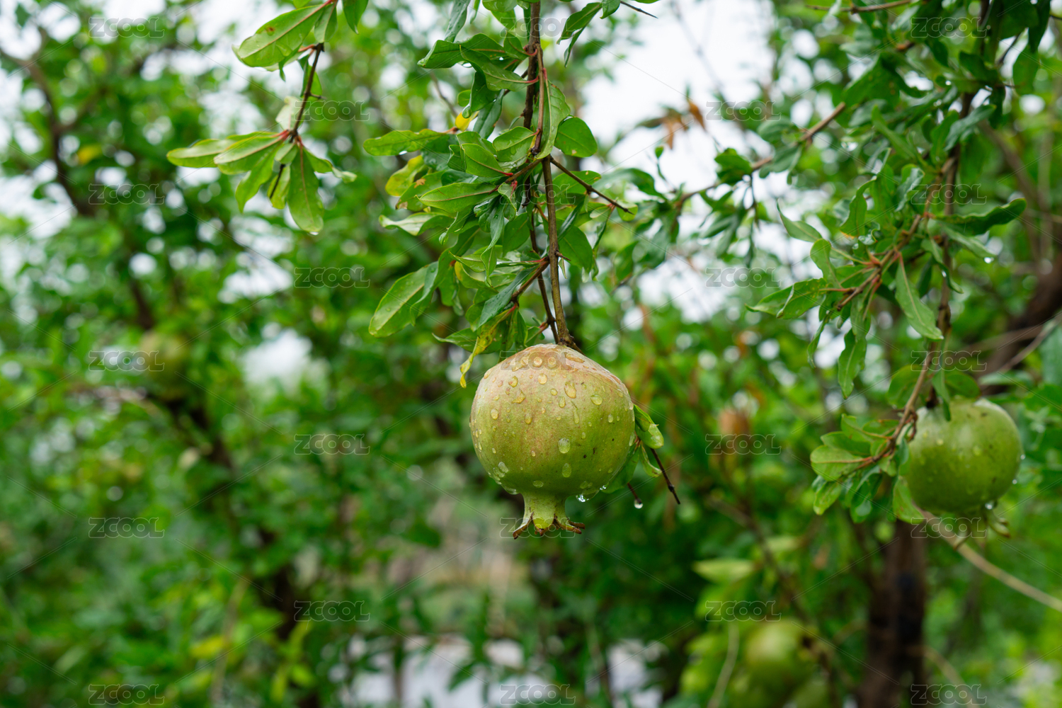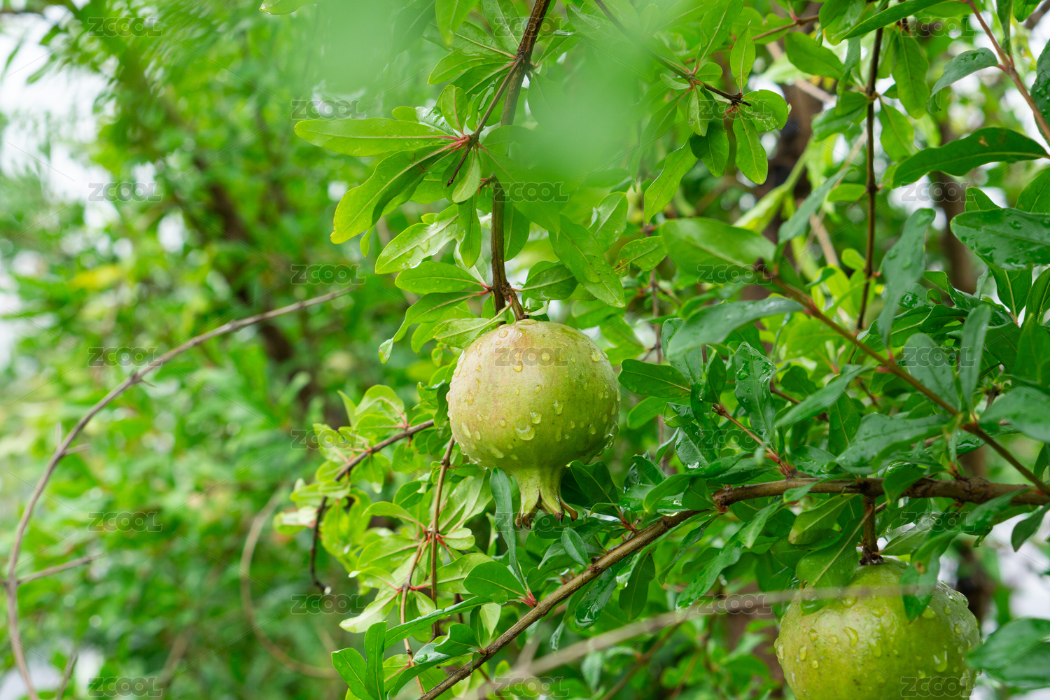 夏天雨后的石榴树和石榴
