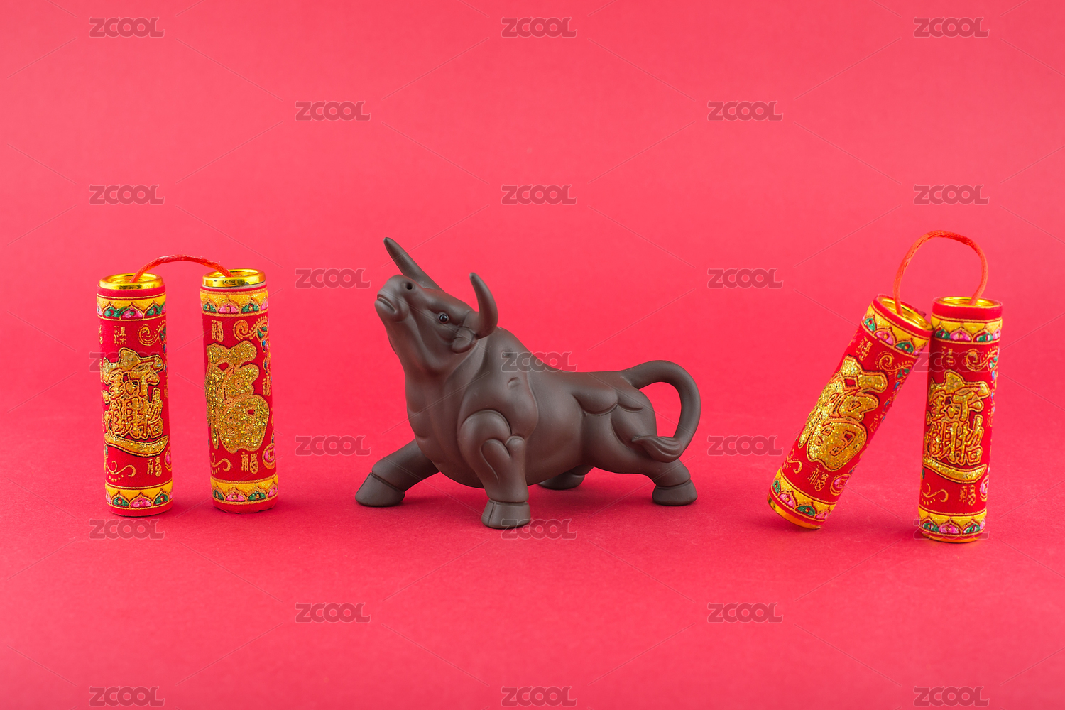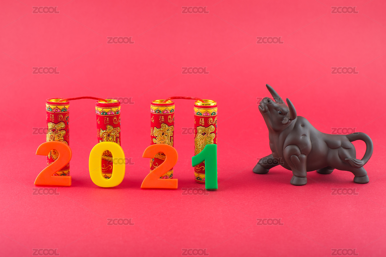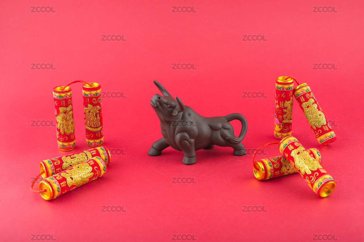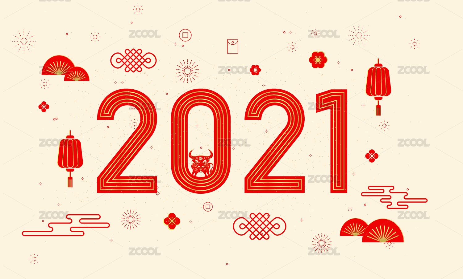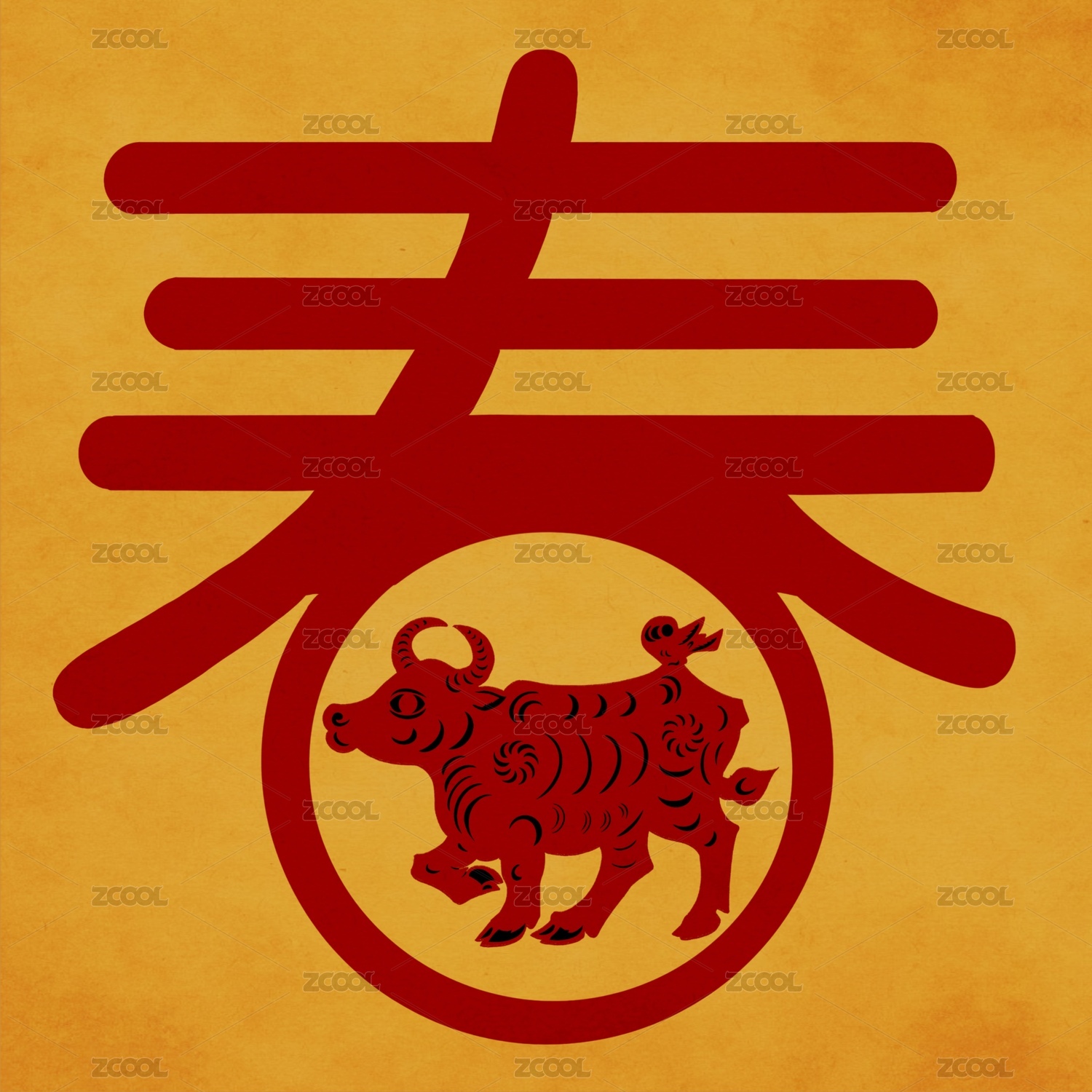 2021年春节新年牛年剪纸生肖牛招财进宝