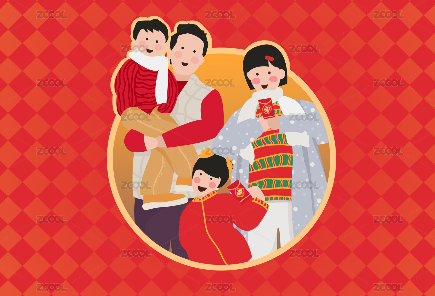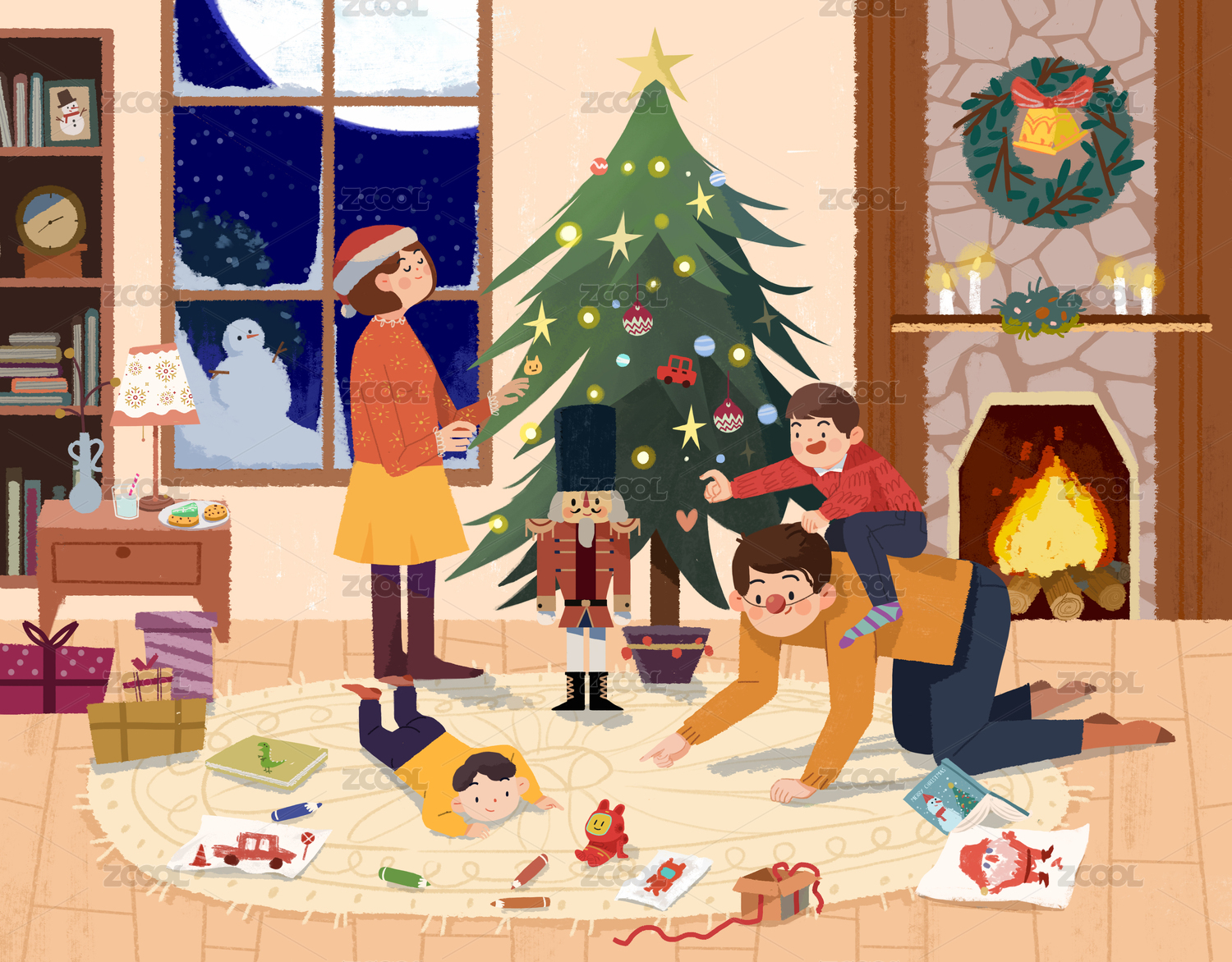 一家人快乐过圣诞插画
