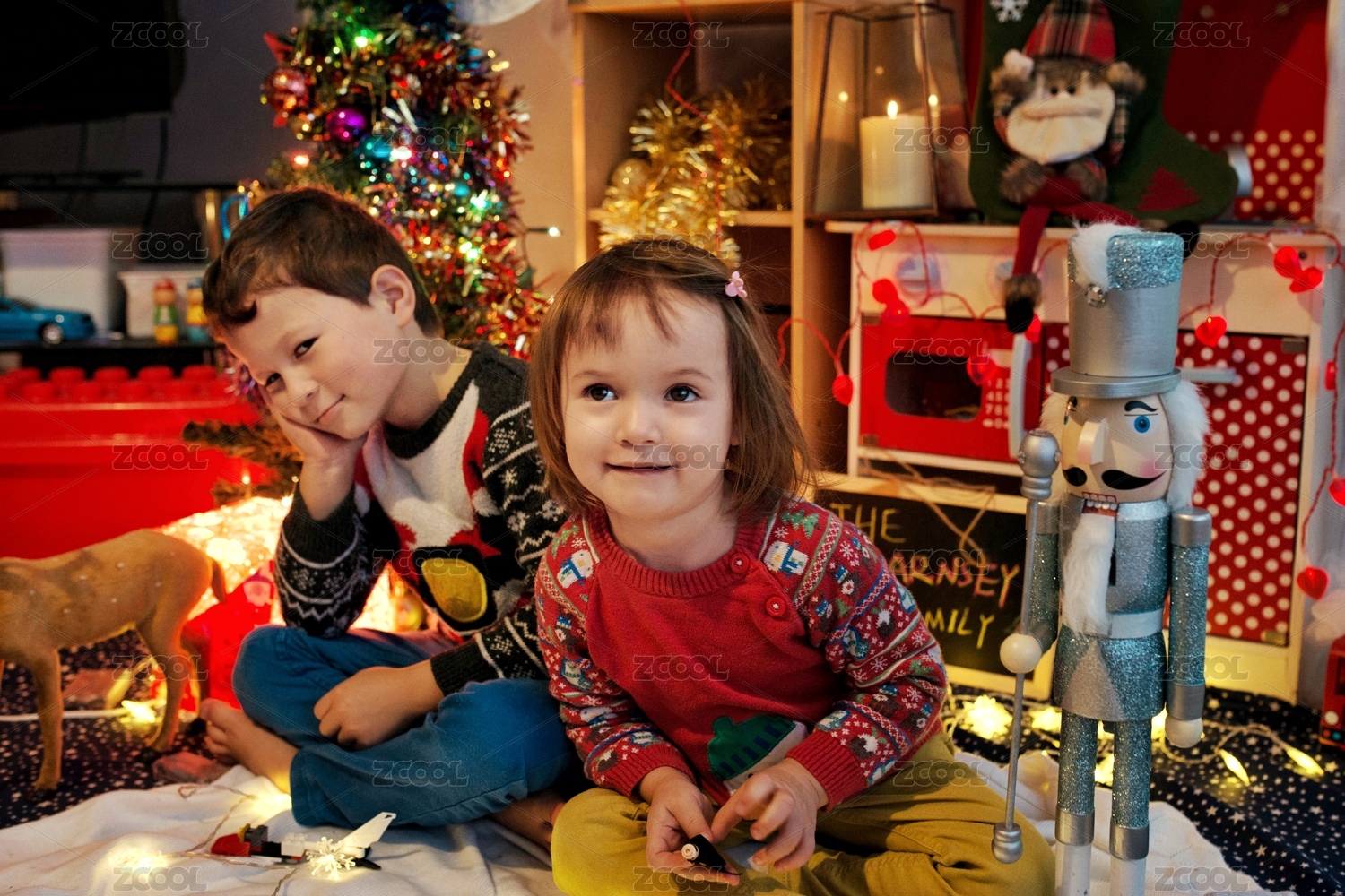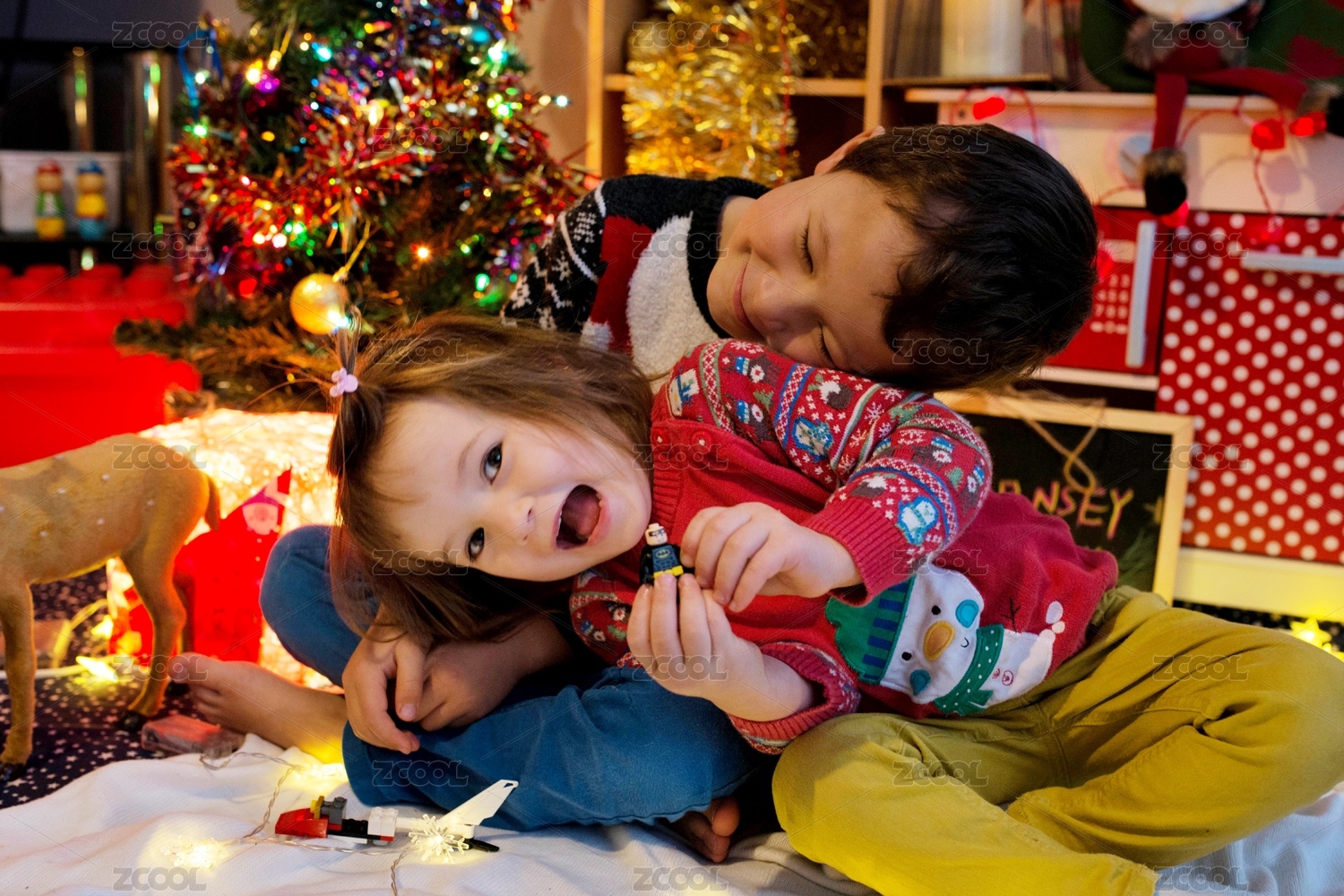 欢喜过节的可爱漂亮混血兄妹