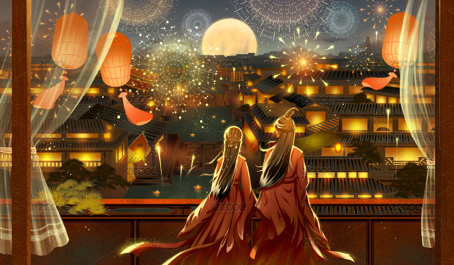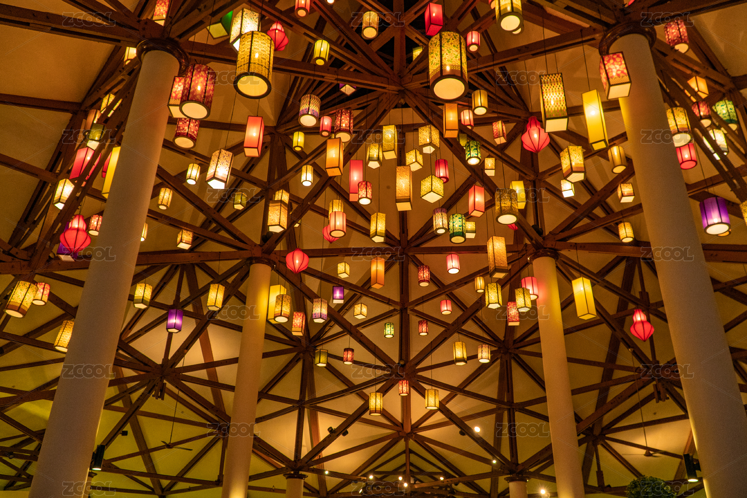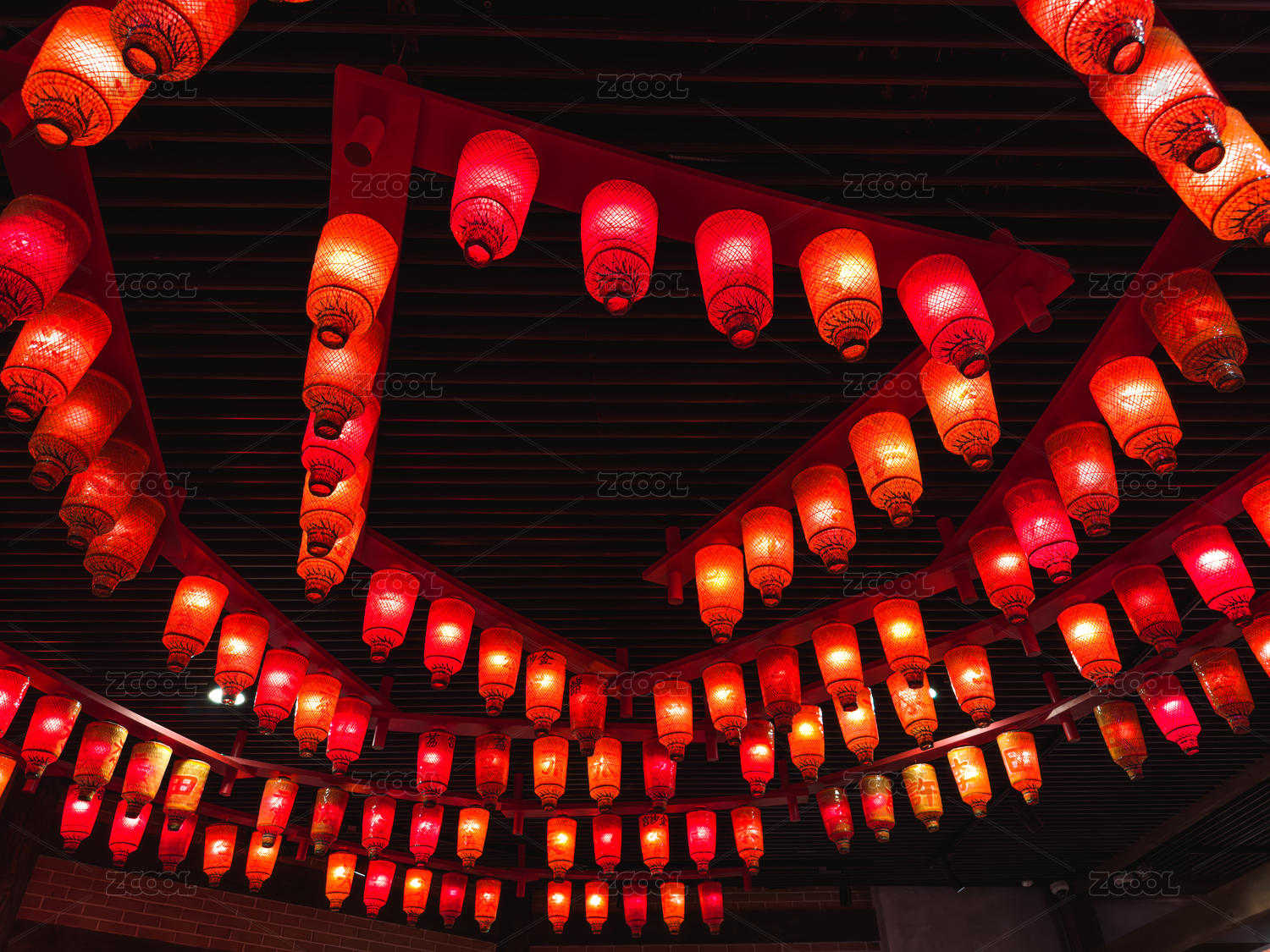 室内挂着很多灯笼过节