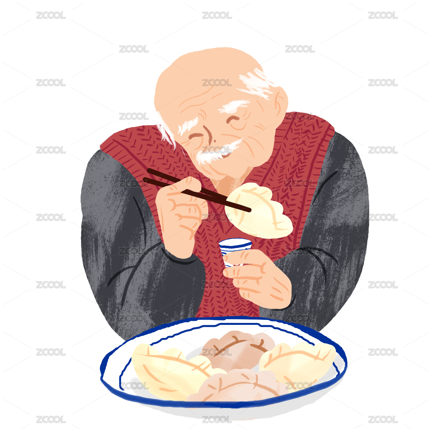 吃饺子的老爷爷