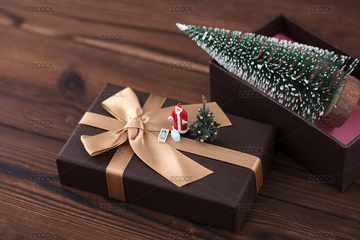 微缩创意礼物盒上的圣诞老人