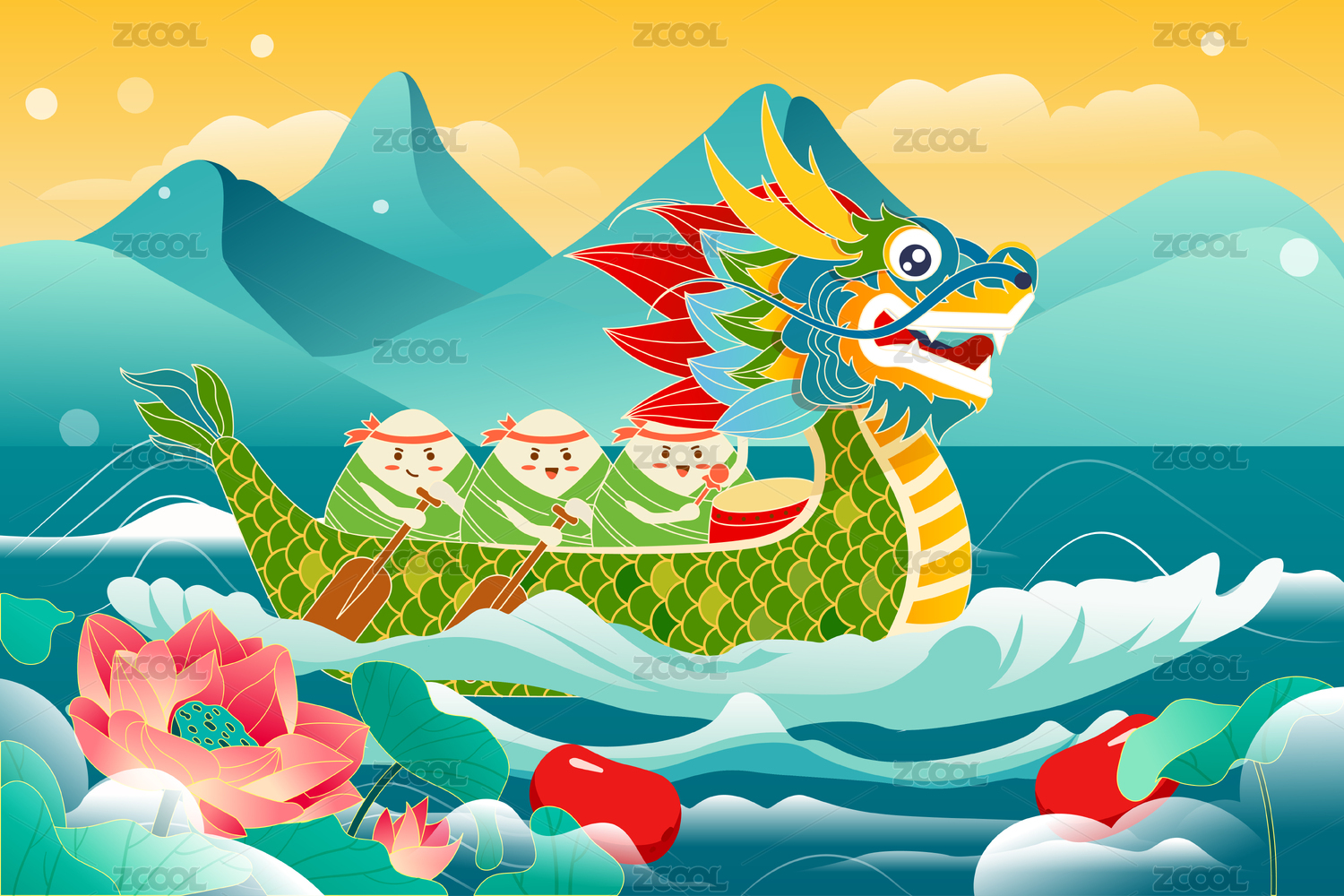 端午节 粽子龙舟插画