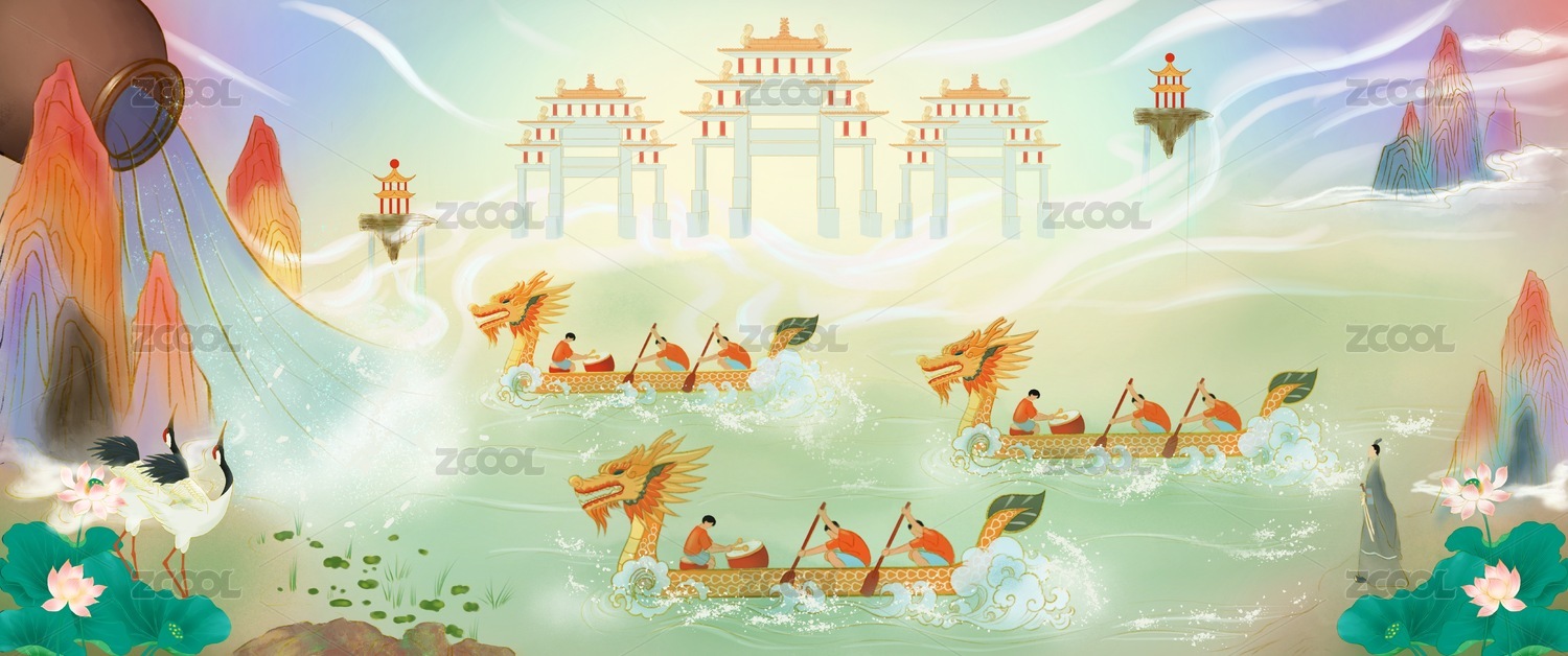 国风龙舟比赛插画