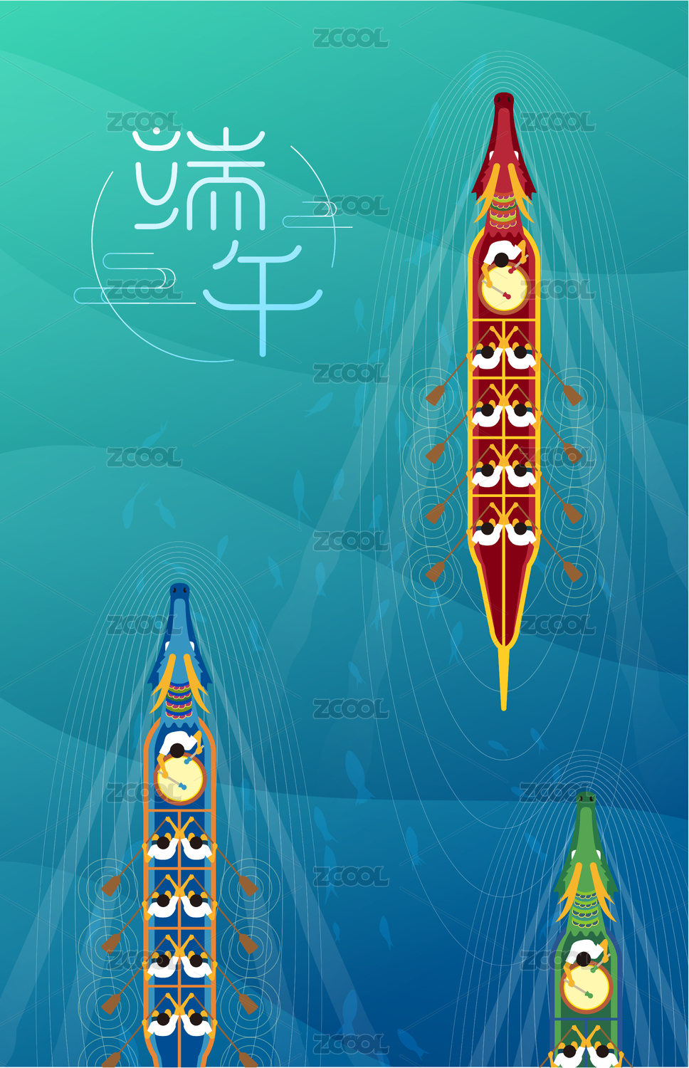 端午节赛龙舟比赛矢量插画海报