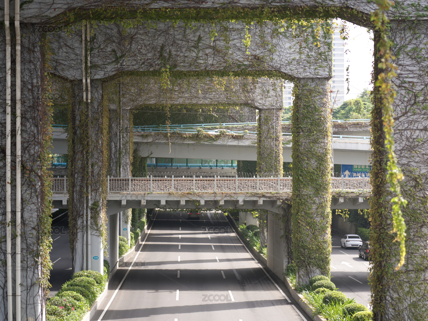福建厦门城市中的绿色拱门隧道