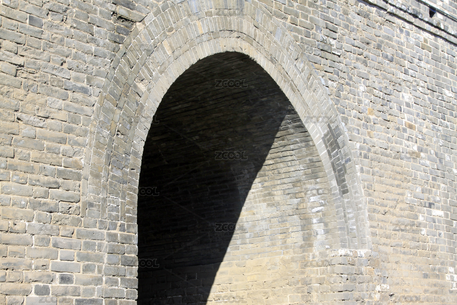 古砖墙拱门仰拍