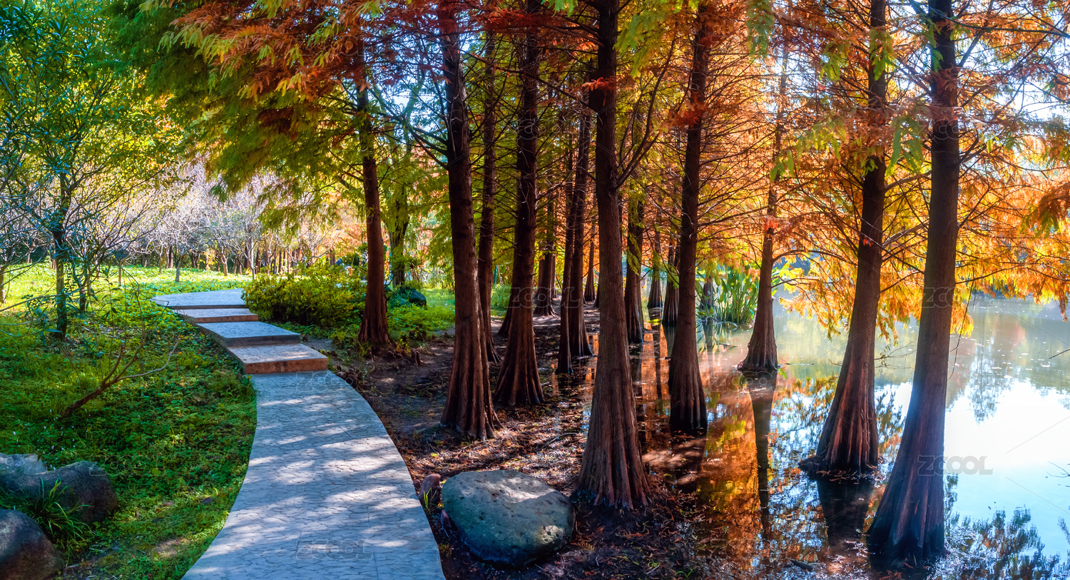 中国江苏南京东郊钟山风景名胜区燕雀湖秋色
