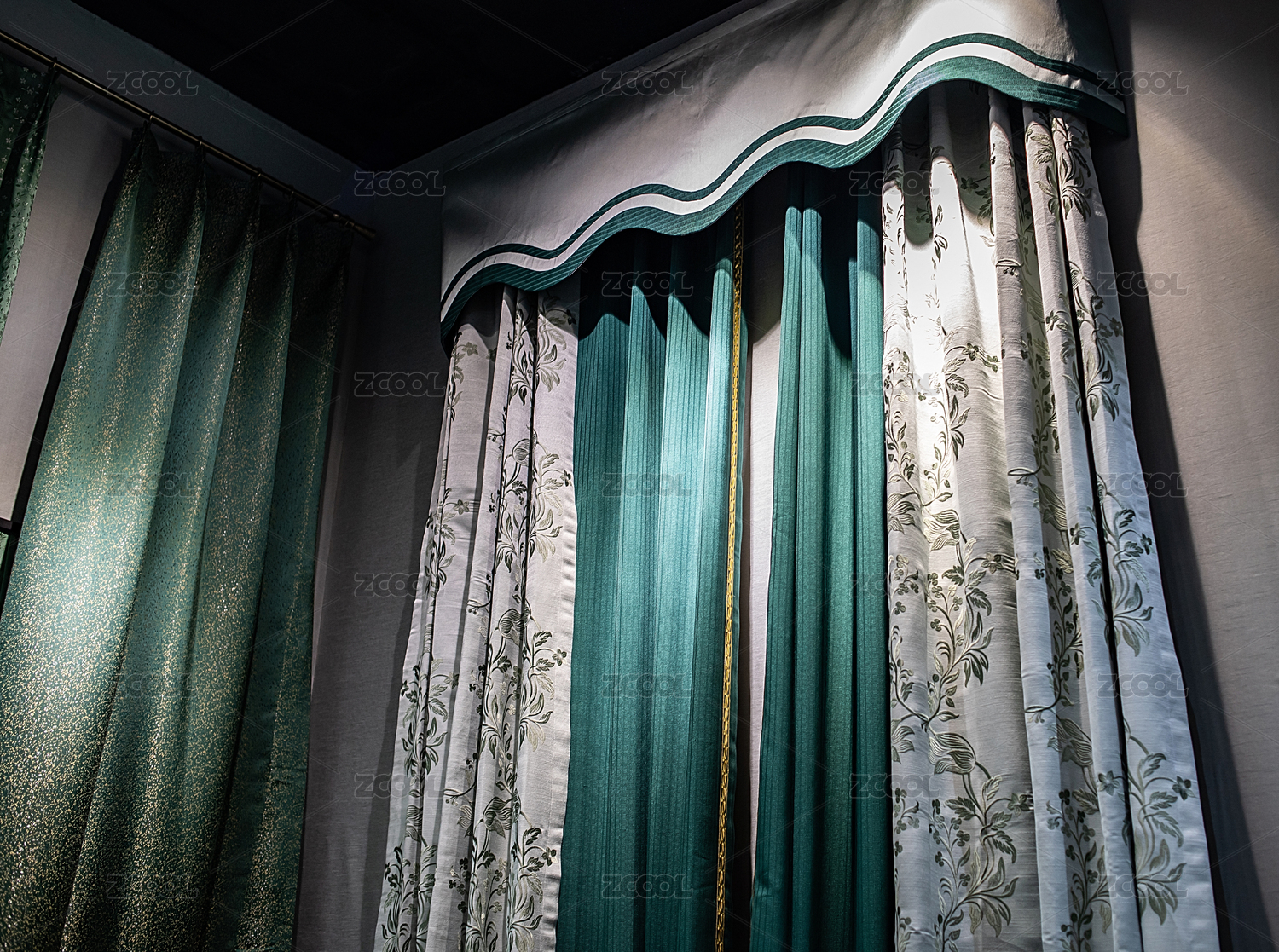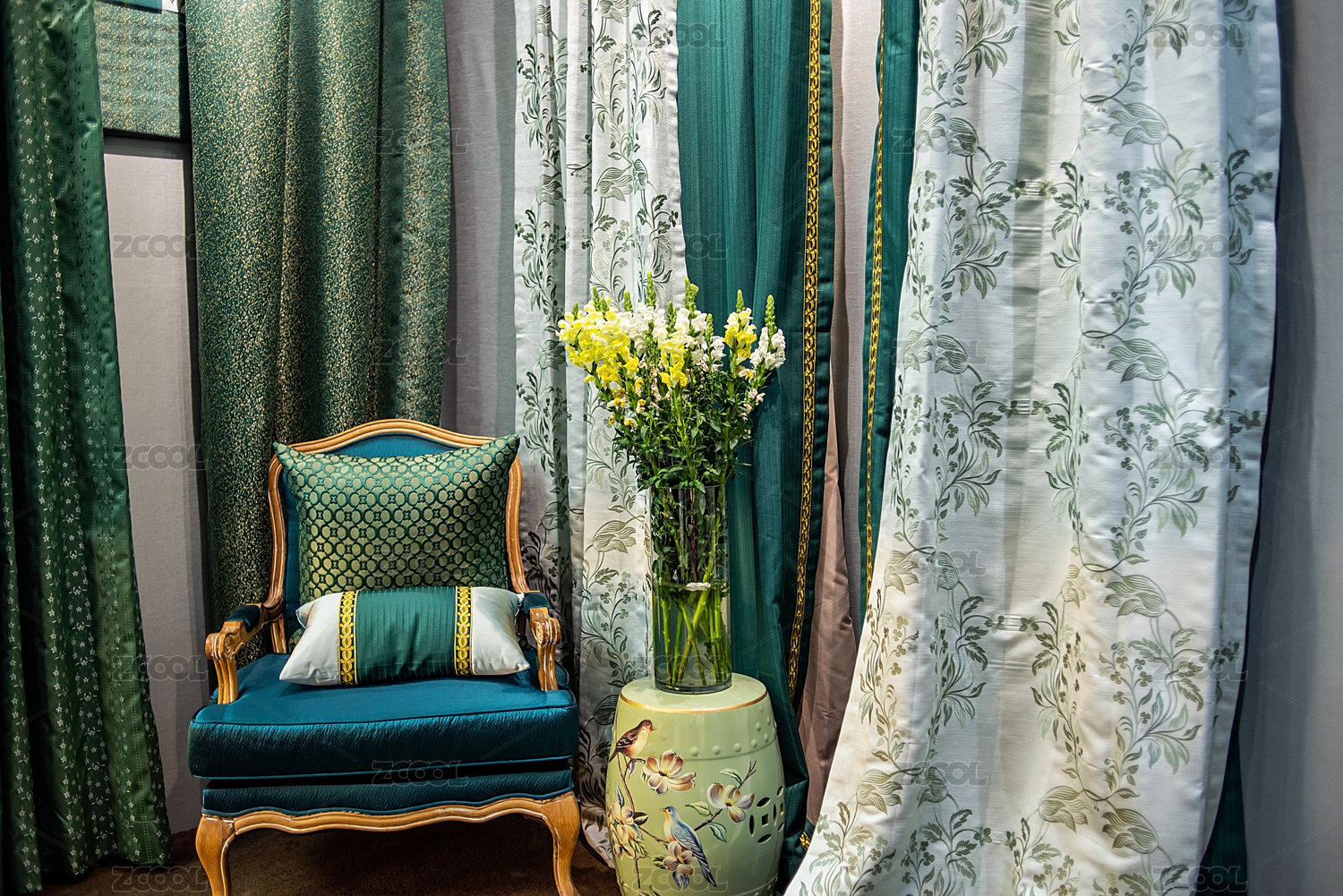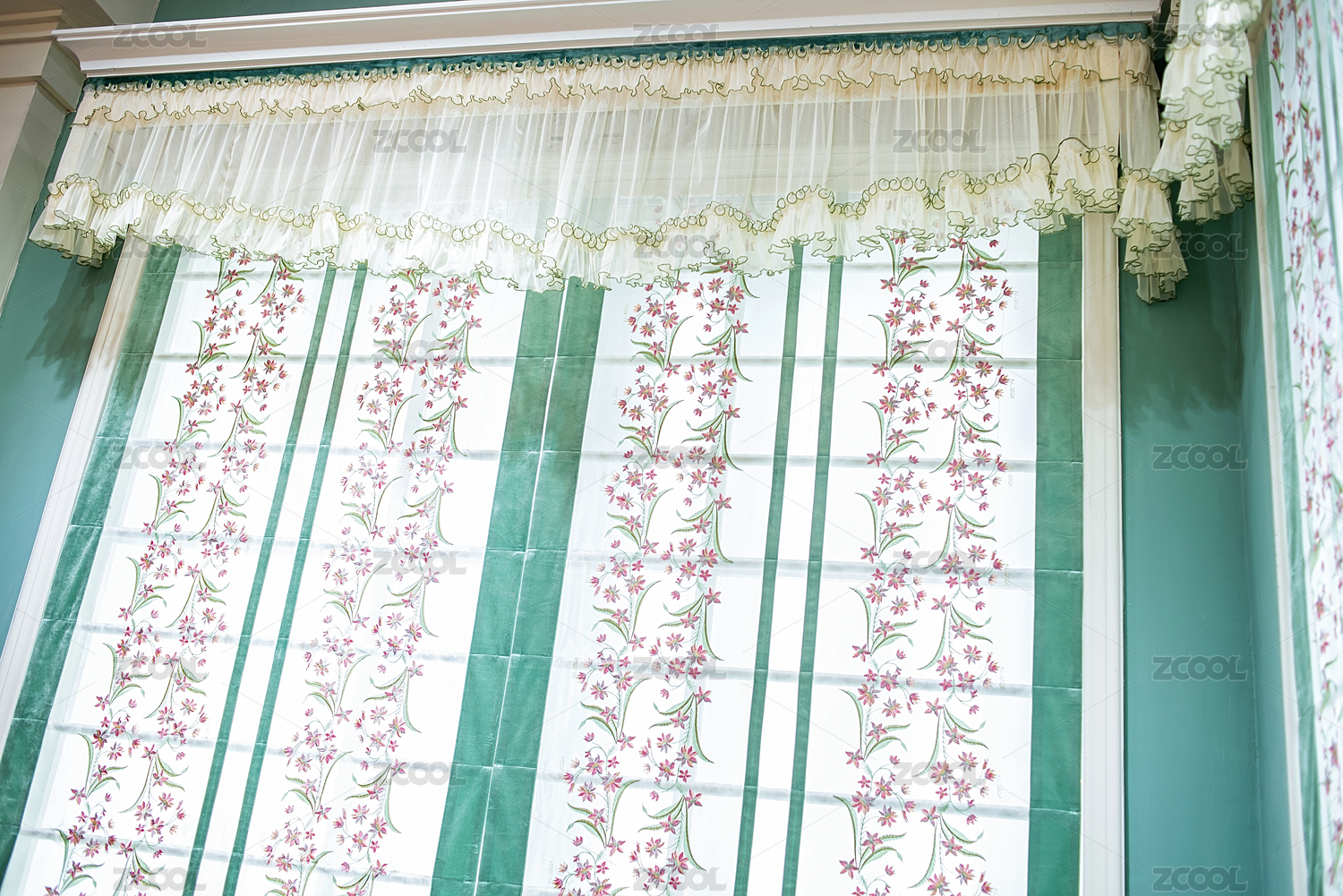 家居装修室内软装设计环境背景素材/房间的绣花窗帘和茶几椅子