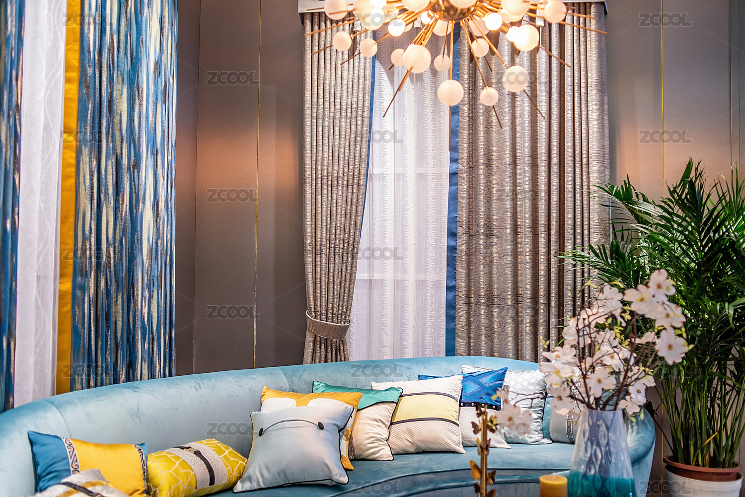 家居装修室内软装设计环境背景素材/房间的沙发和窗帘