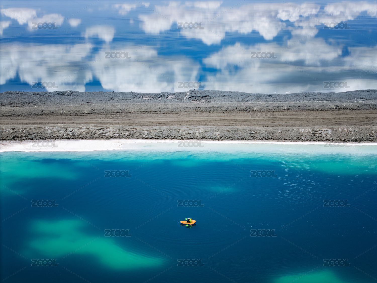 在青海大柴旦盐湖中划皮划艇的人