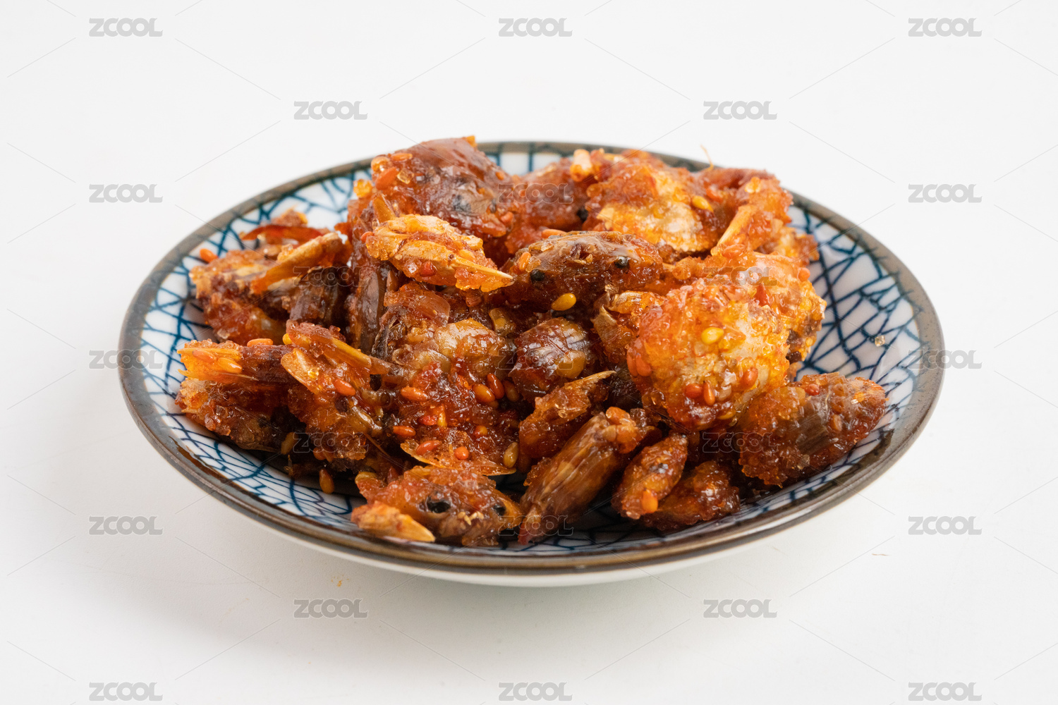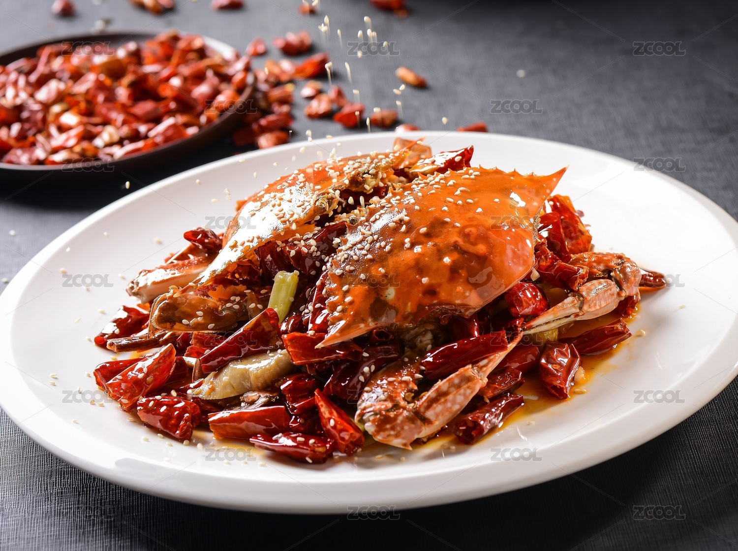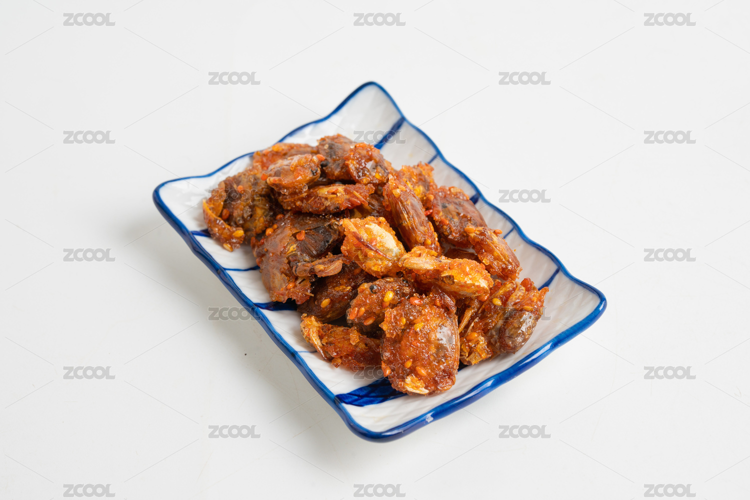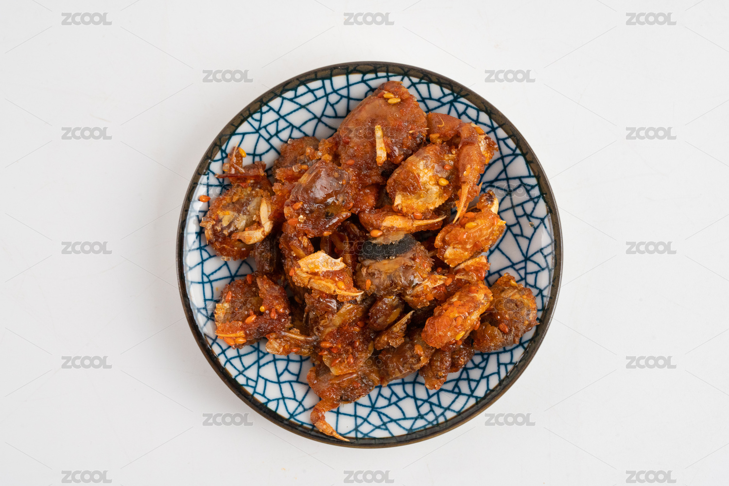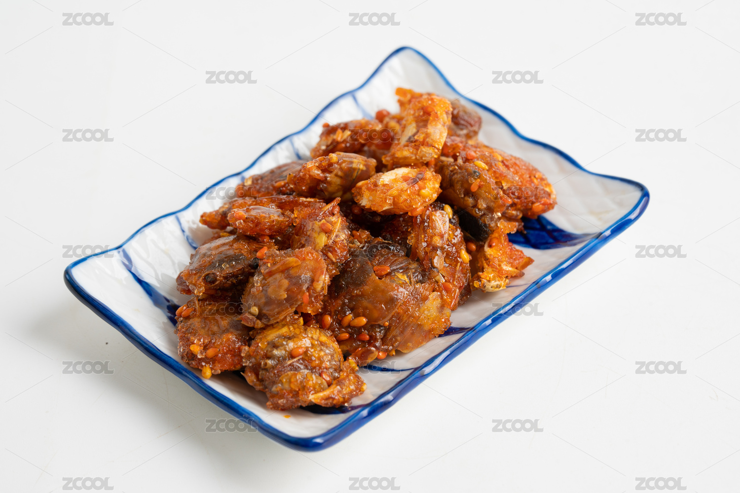 白底上的一盆香辣蟹