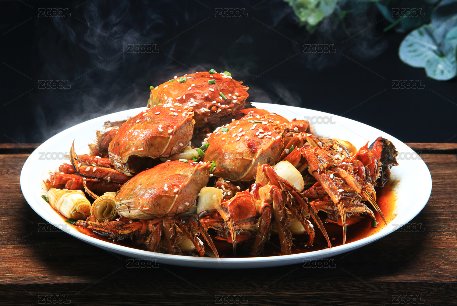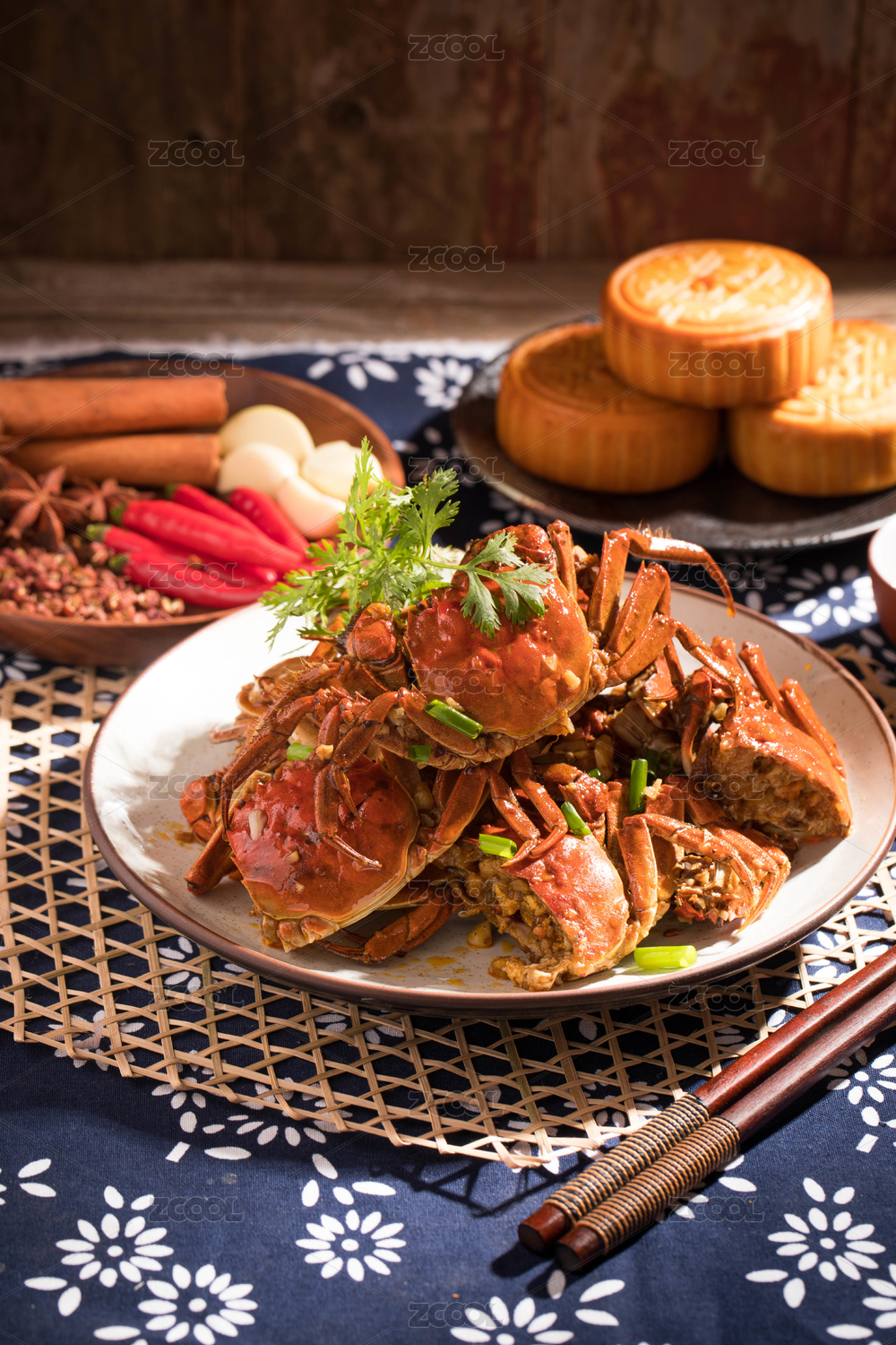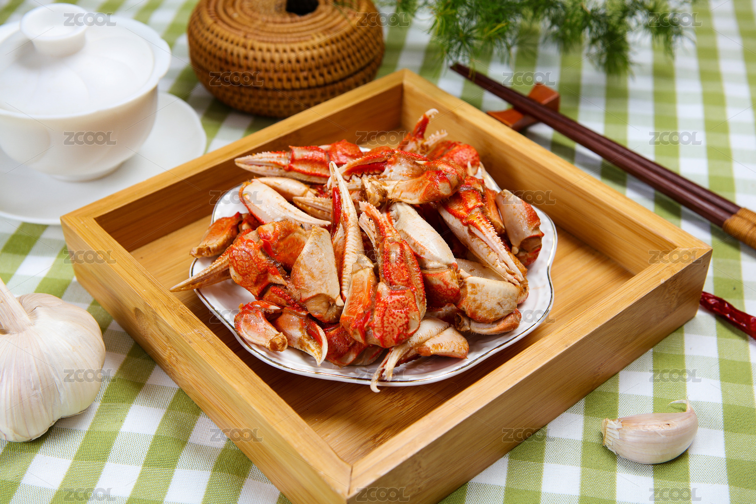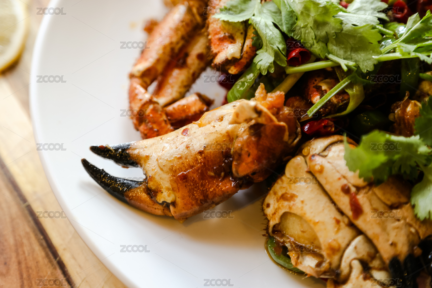 木桌上的香辣蟹钳