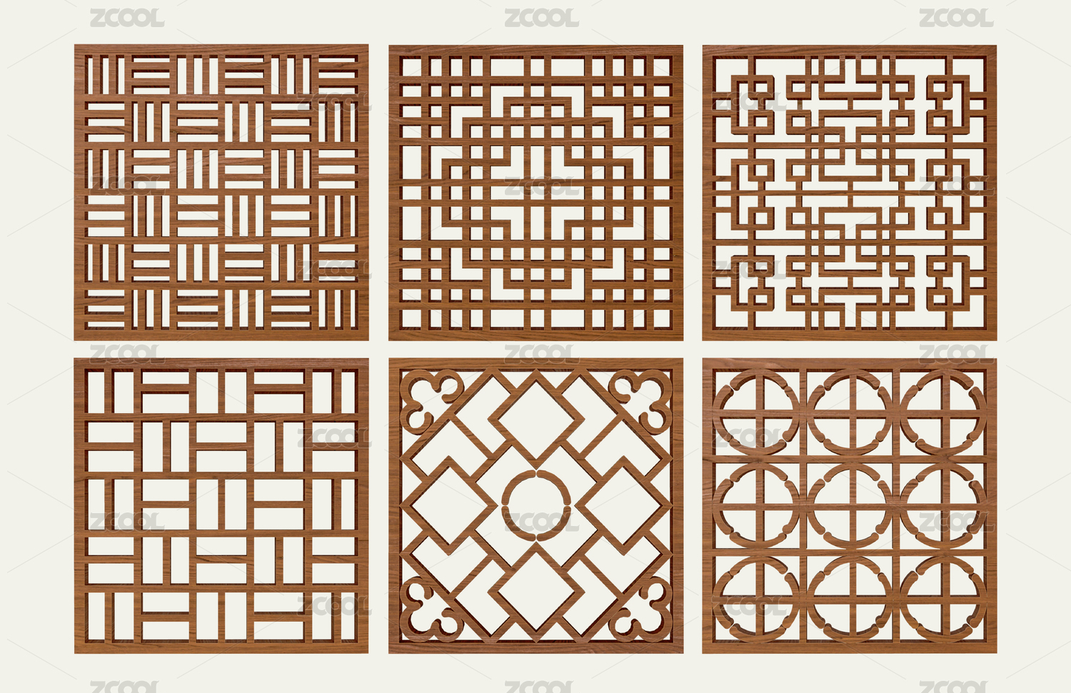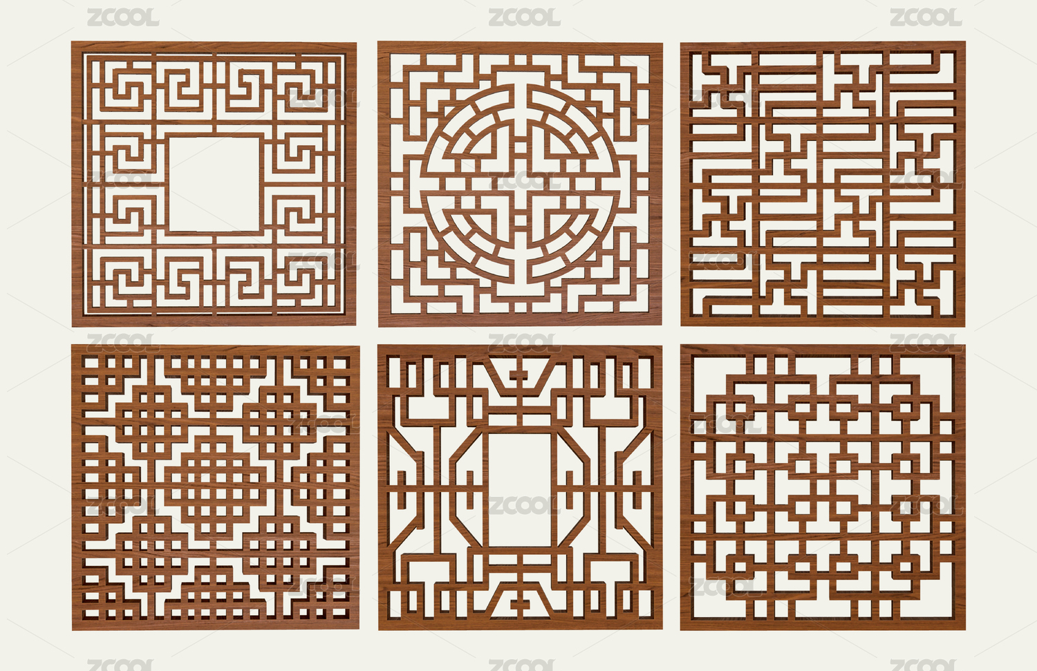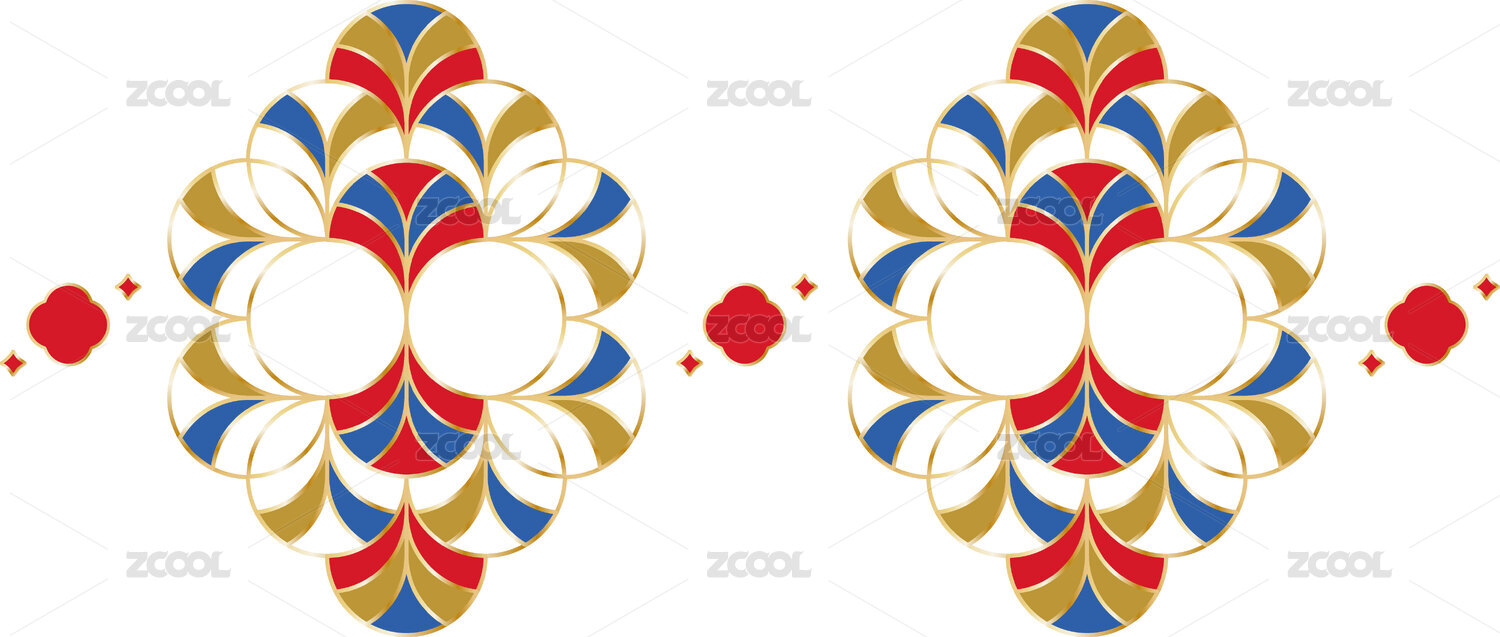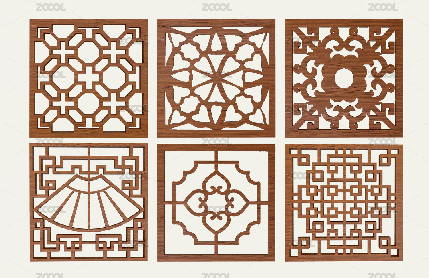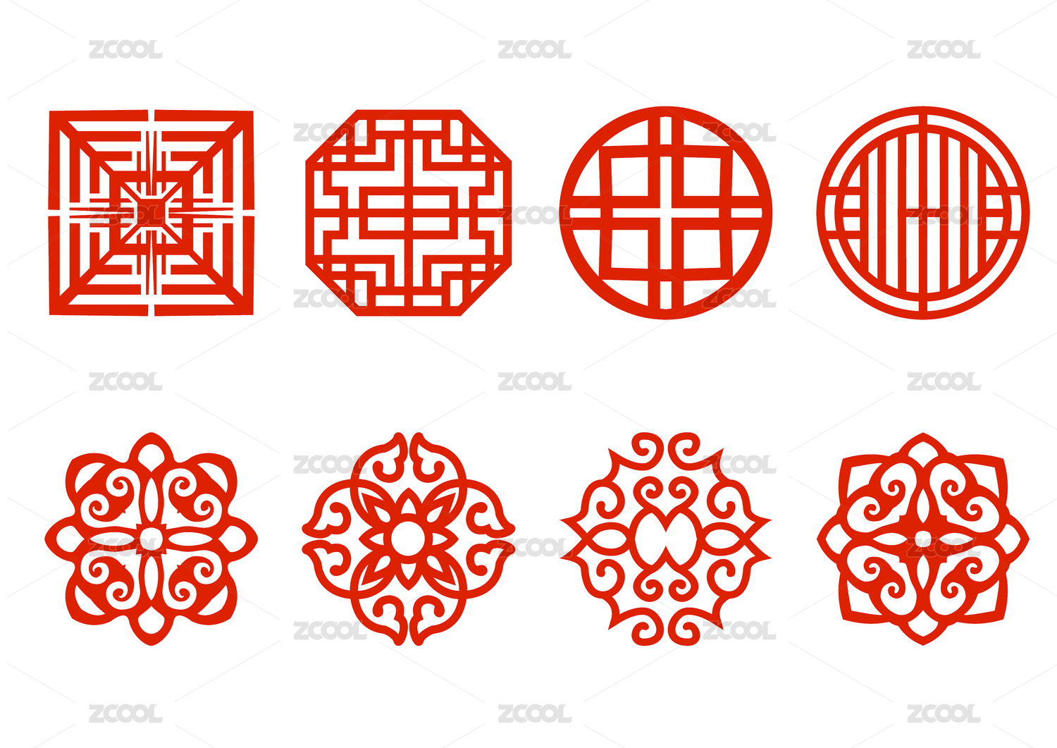 中国风雕花镂空扇形装饰花边冰裂纹装饰图案
