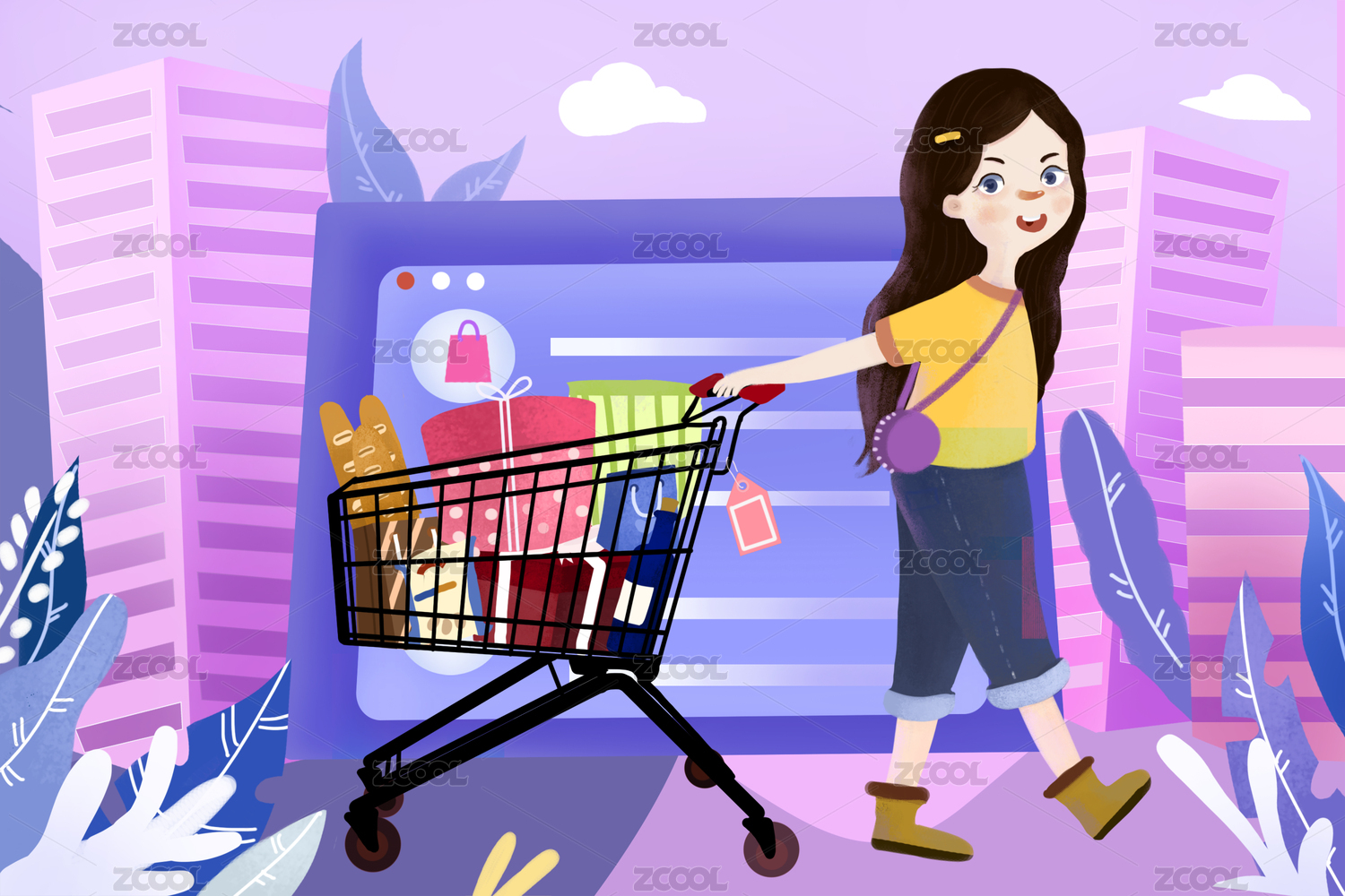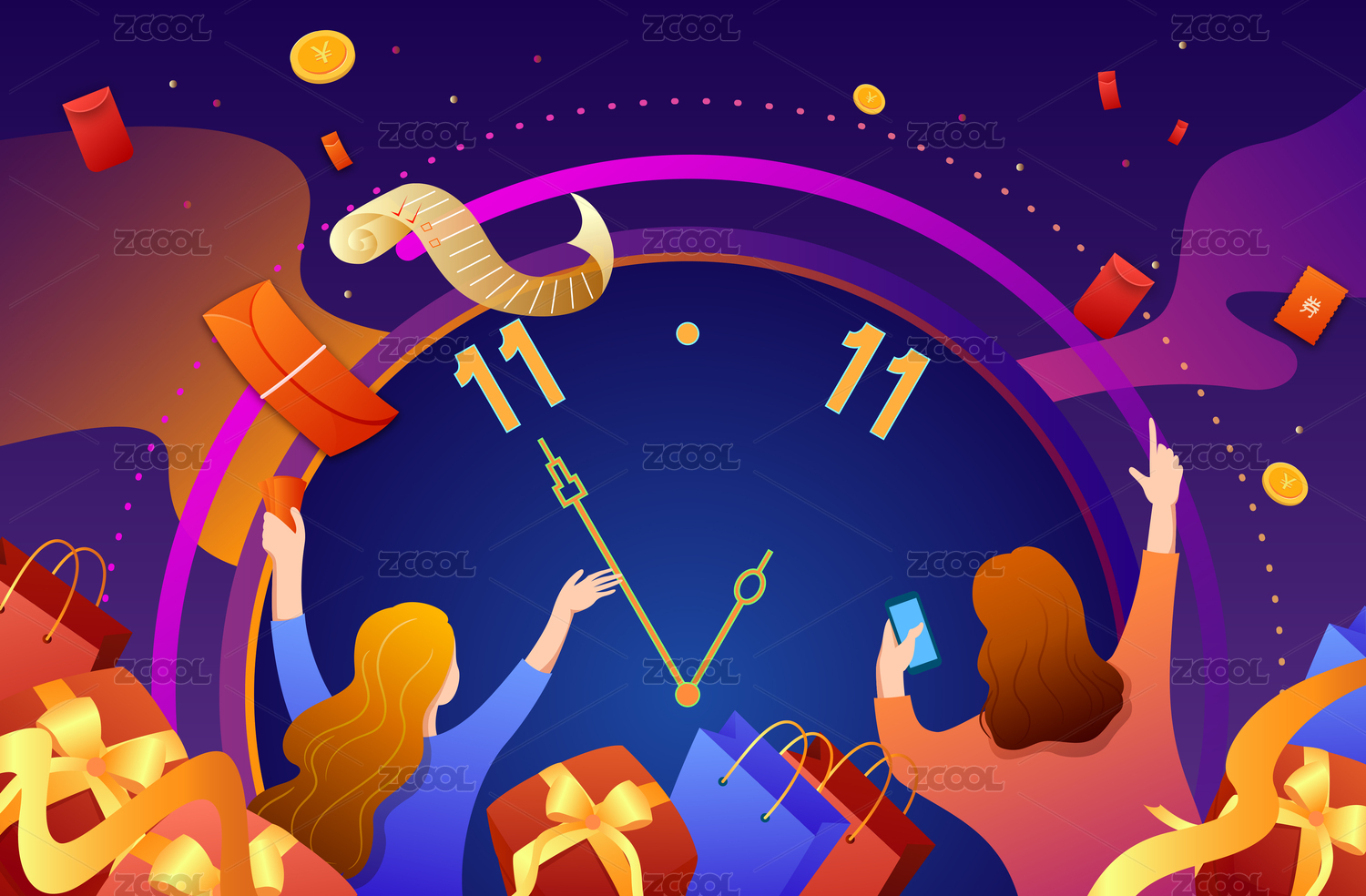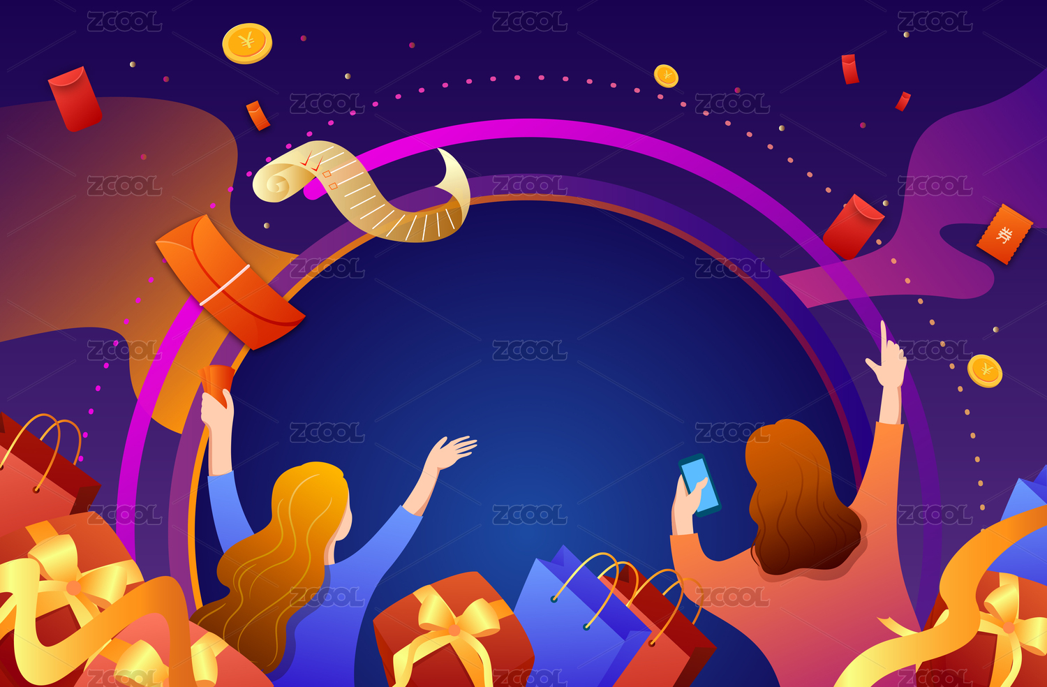 购物狂欢的女性与礼物电商节日背景