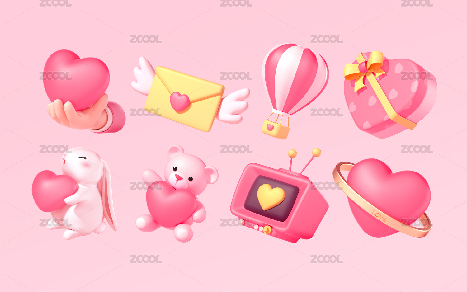 情人节粉色电商节日活动促销元素图标合集