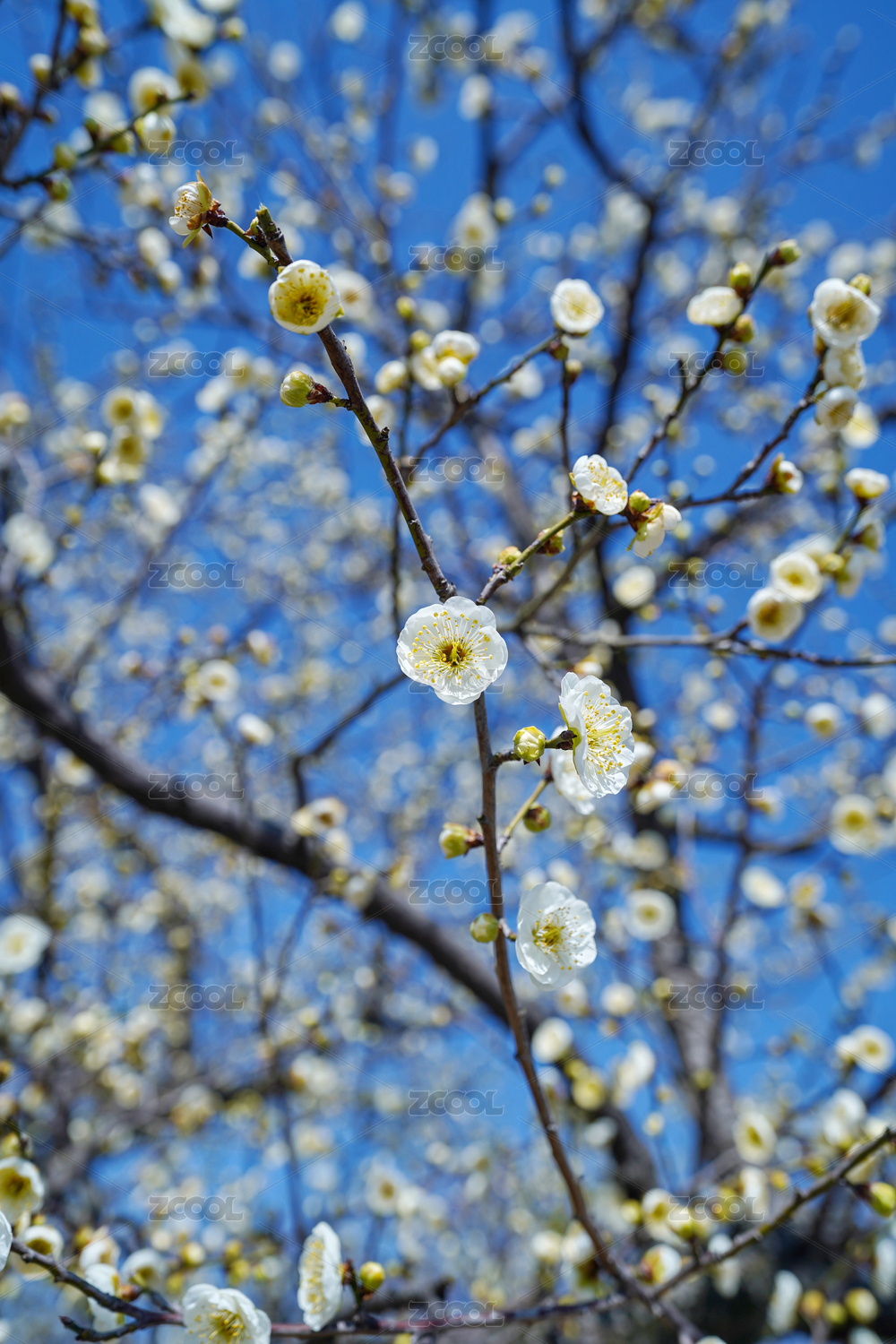 中间一朵梅花特写背景花枝虚化的梅竖幅