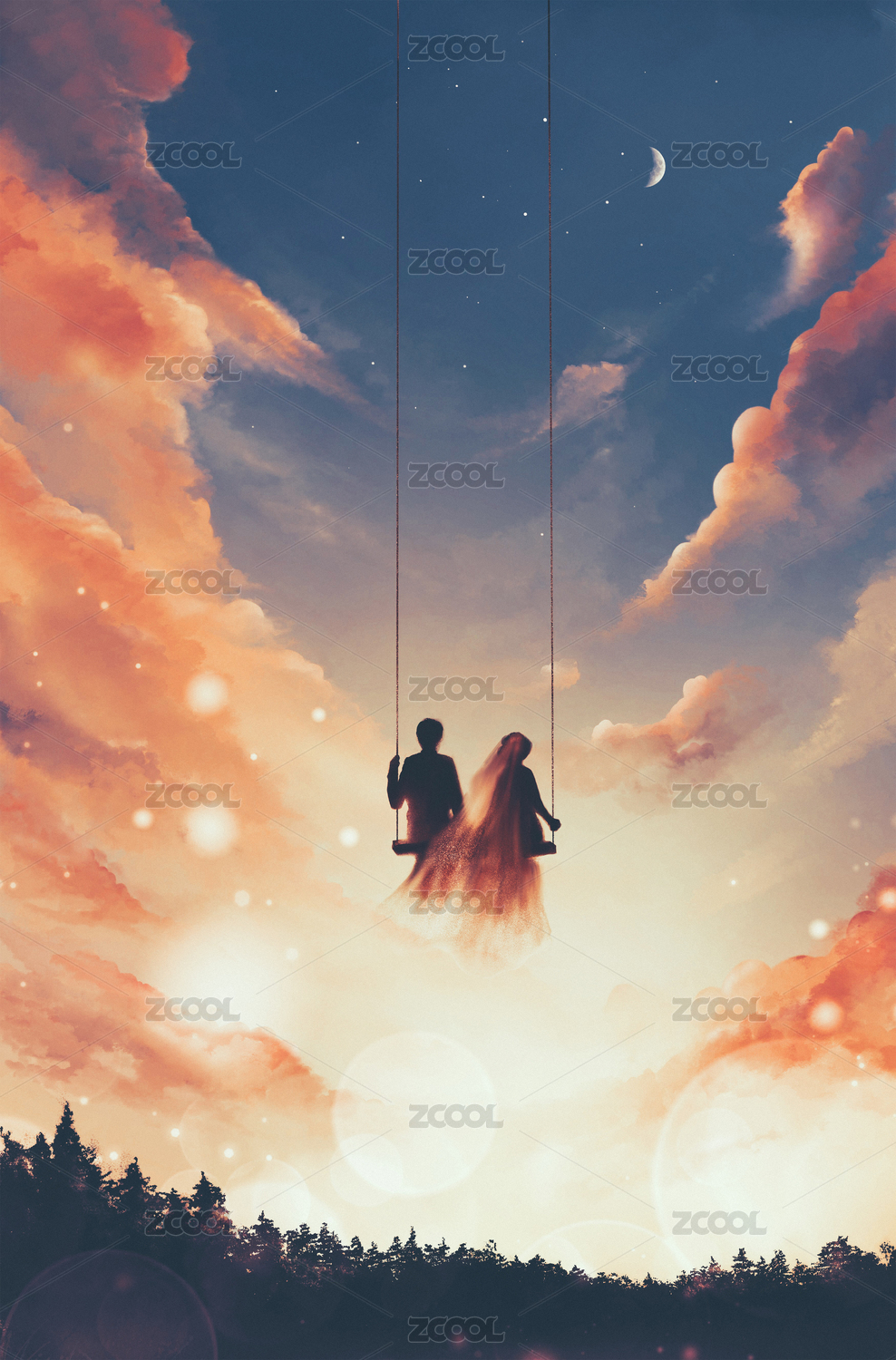 高铁城市交通现代建筑矢量夜晚户外竖幅插画