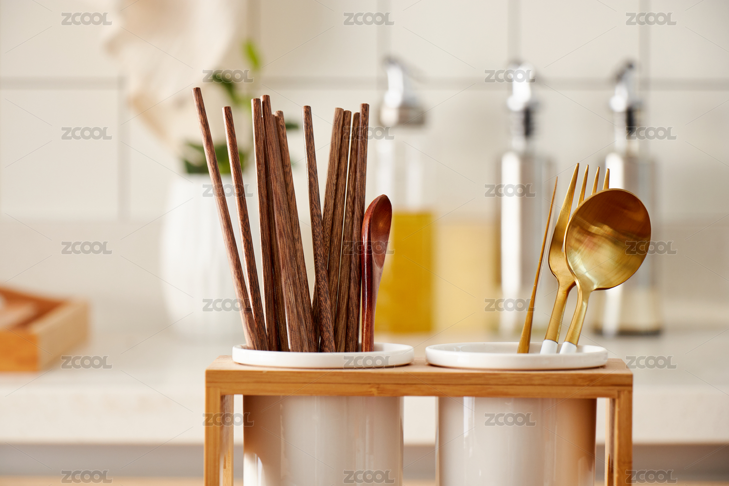在黄色背景上悬浮的勺子、筷子和小馒头