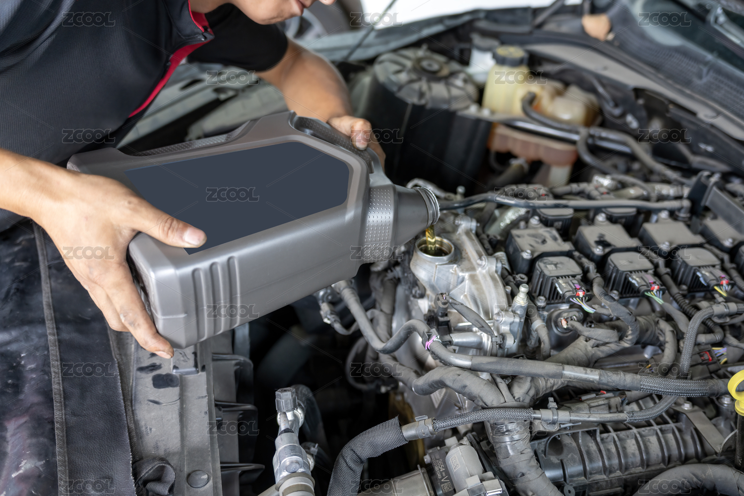 汽车维修人员添加发动机液体