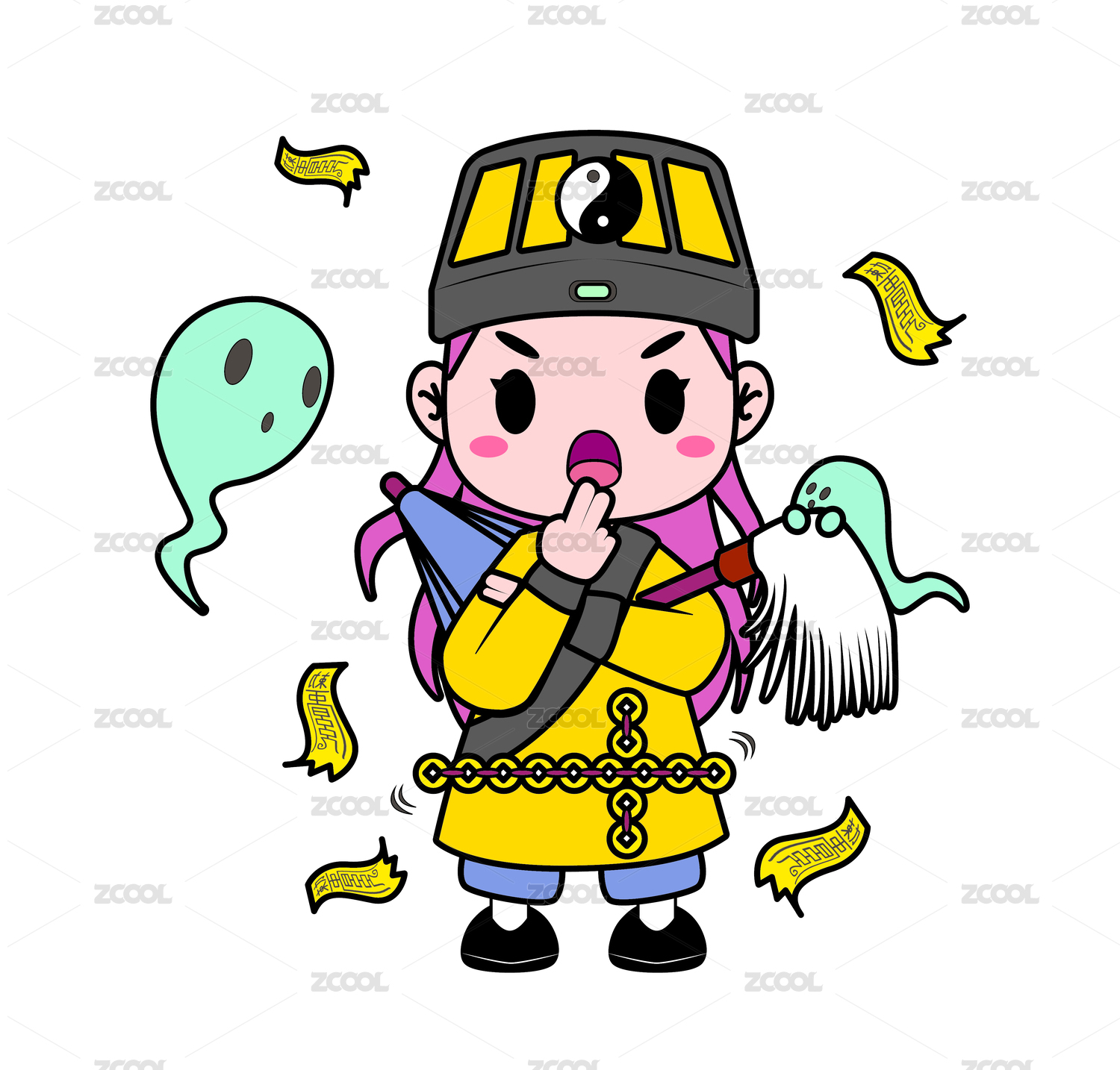 惊悚节中元节中国风可爱矢量僵尸龙婆鬼节