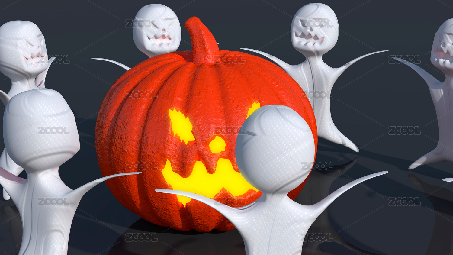 万圣节黑色背景上可怕的僵尸和南瓜灯