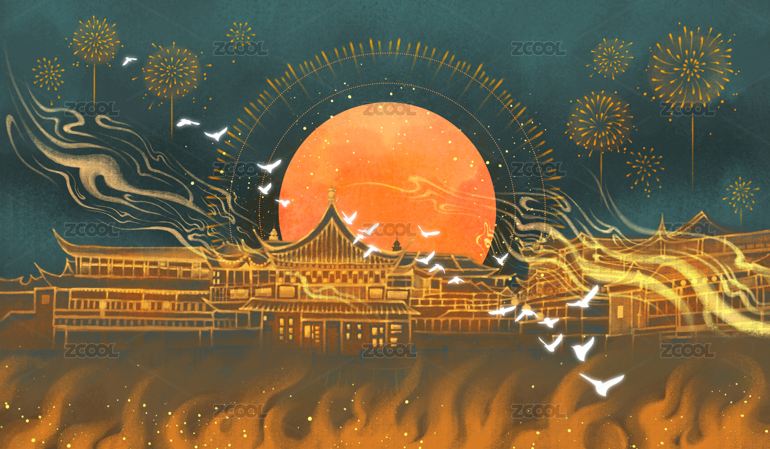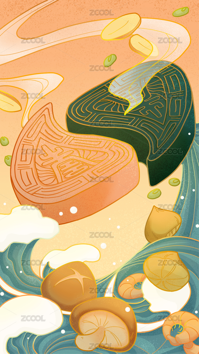 潮汕传统美食牛肉丸子粿条汤国潮插画