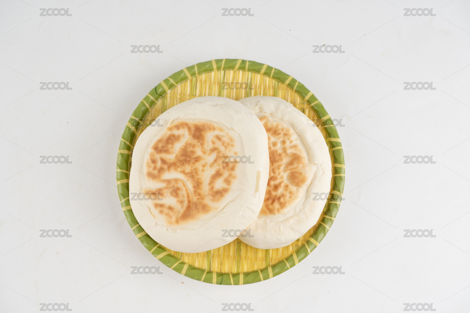白底背景上满满一盘美食白吉馍饼