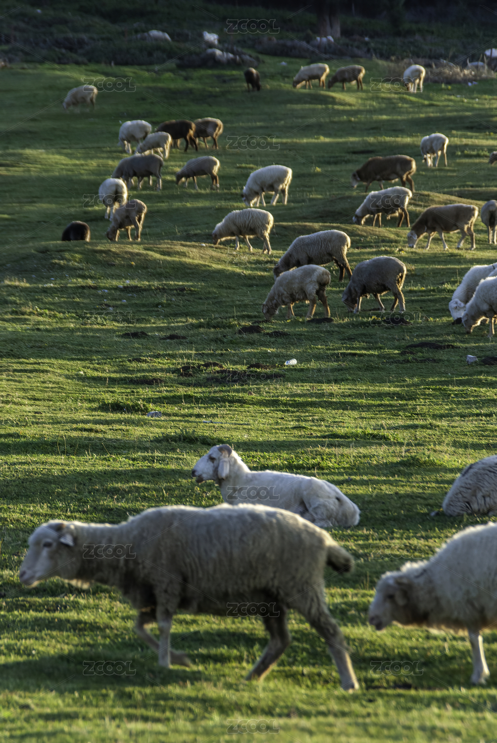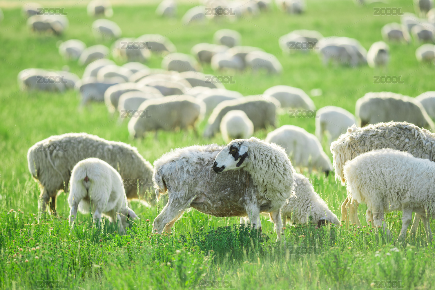内蒙古草原上自由吃草的羊群