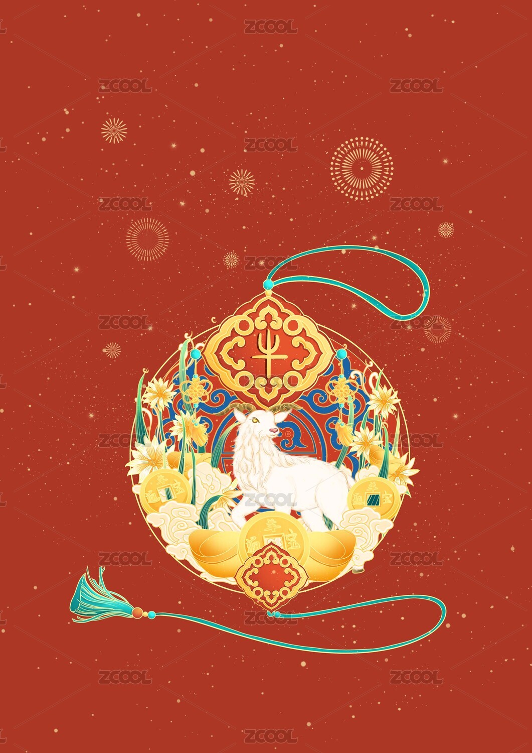 十二生肖国风封面插画未羊