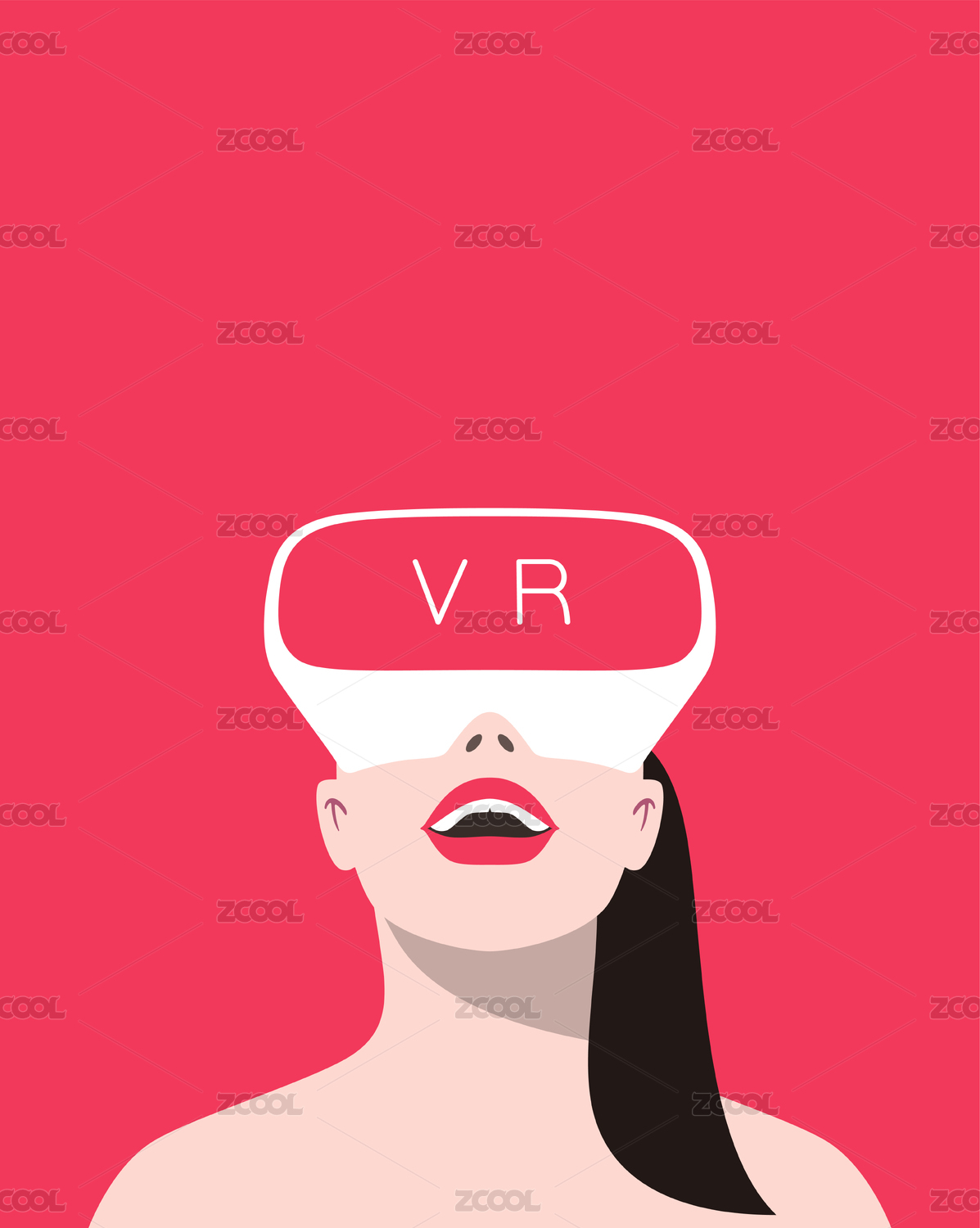 戴着虚拟现实眼镜的美少女