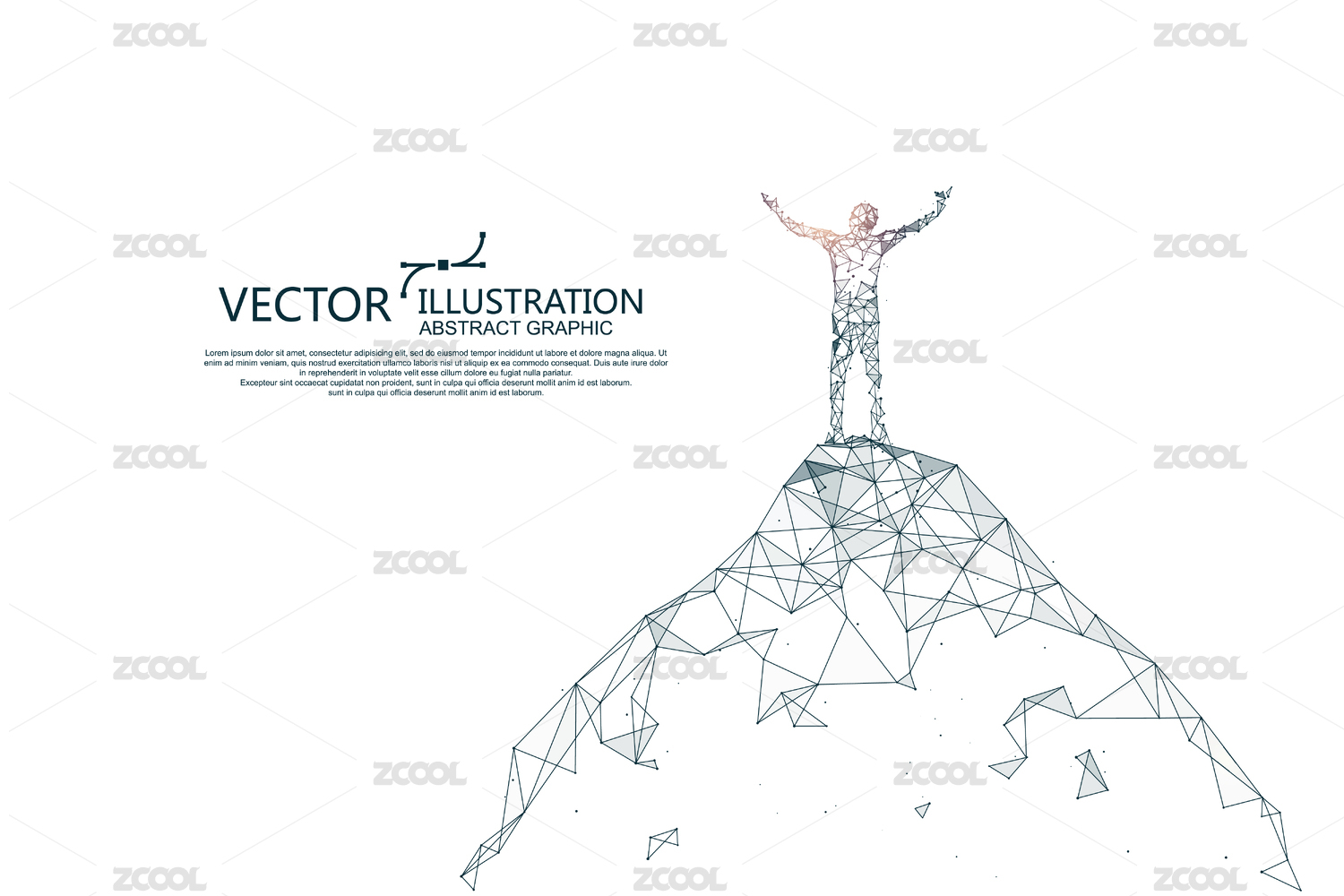 虚拟的人登高望远,线条连接而成、矢量插图。