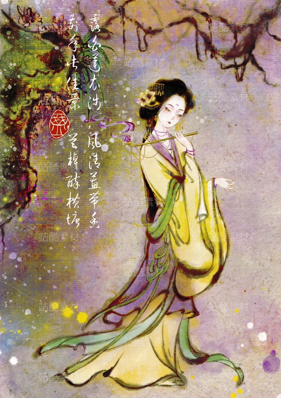 古风紫衣水袖黑发紫霞仙子原画人物设定
