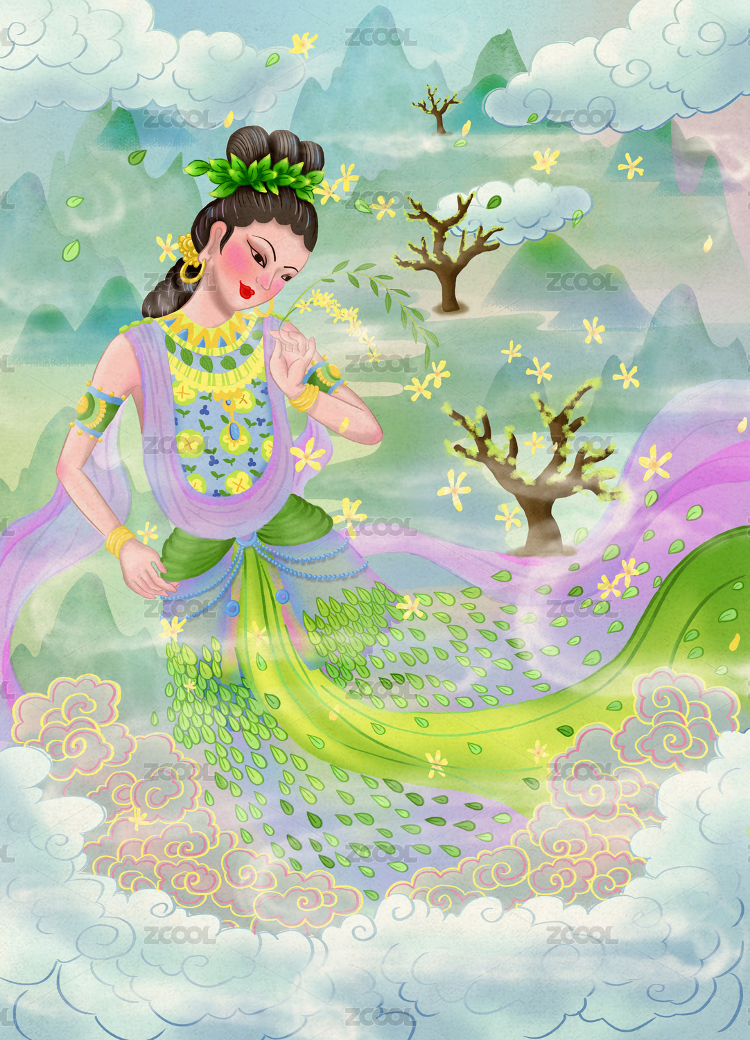 春仙子仙仙袅袅向山水播撒春色使绿意盎