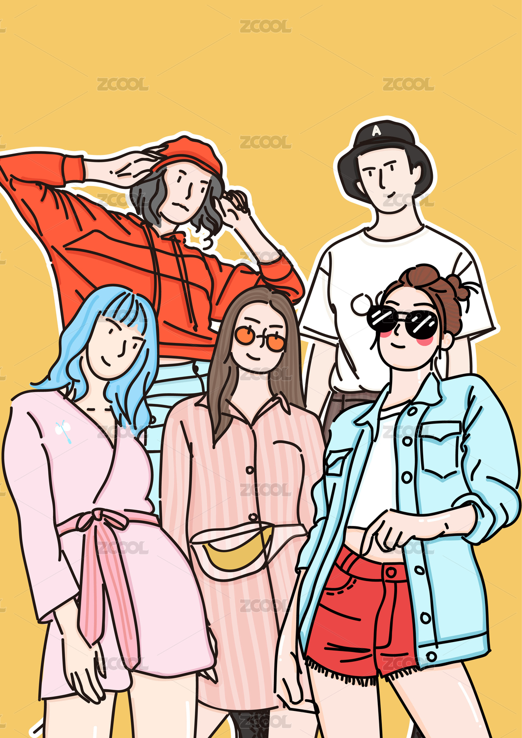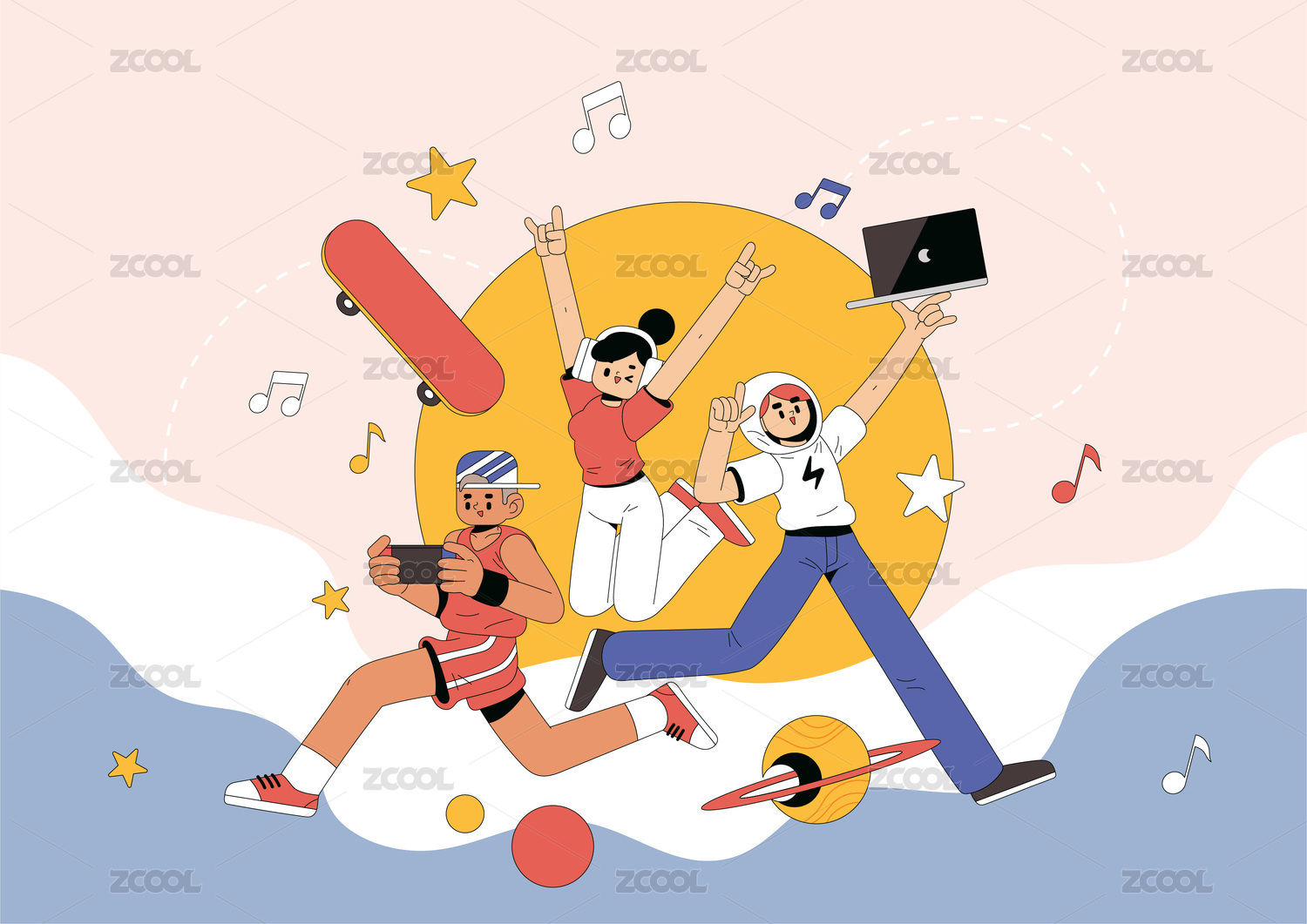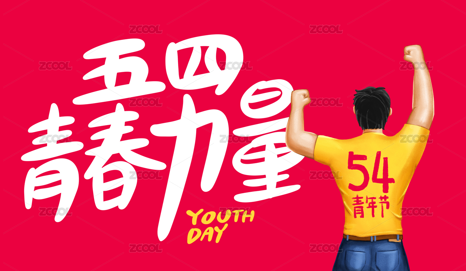 五四青年节青春活泼快乐年轻人跳跃庆祝插画