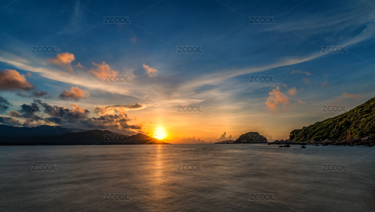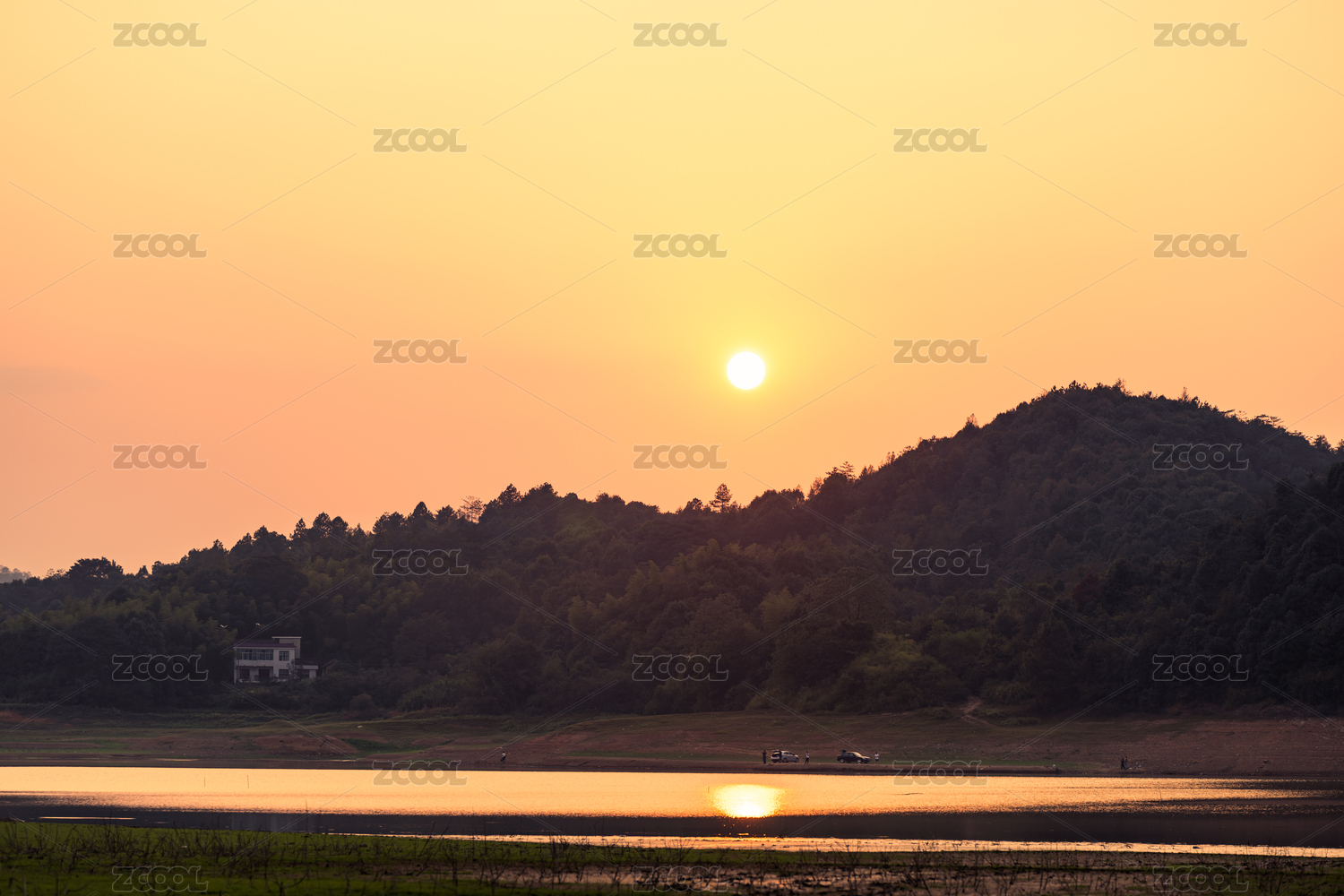 山间水库夕阳落日