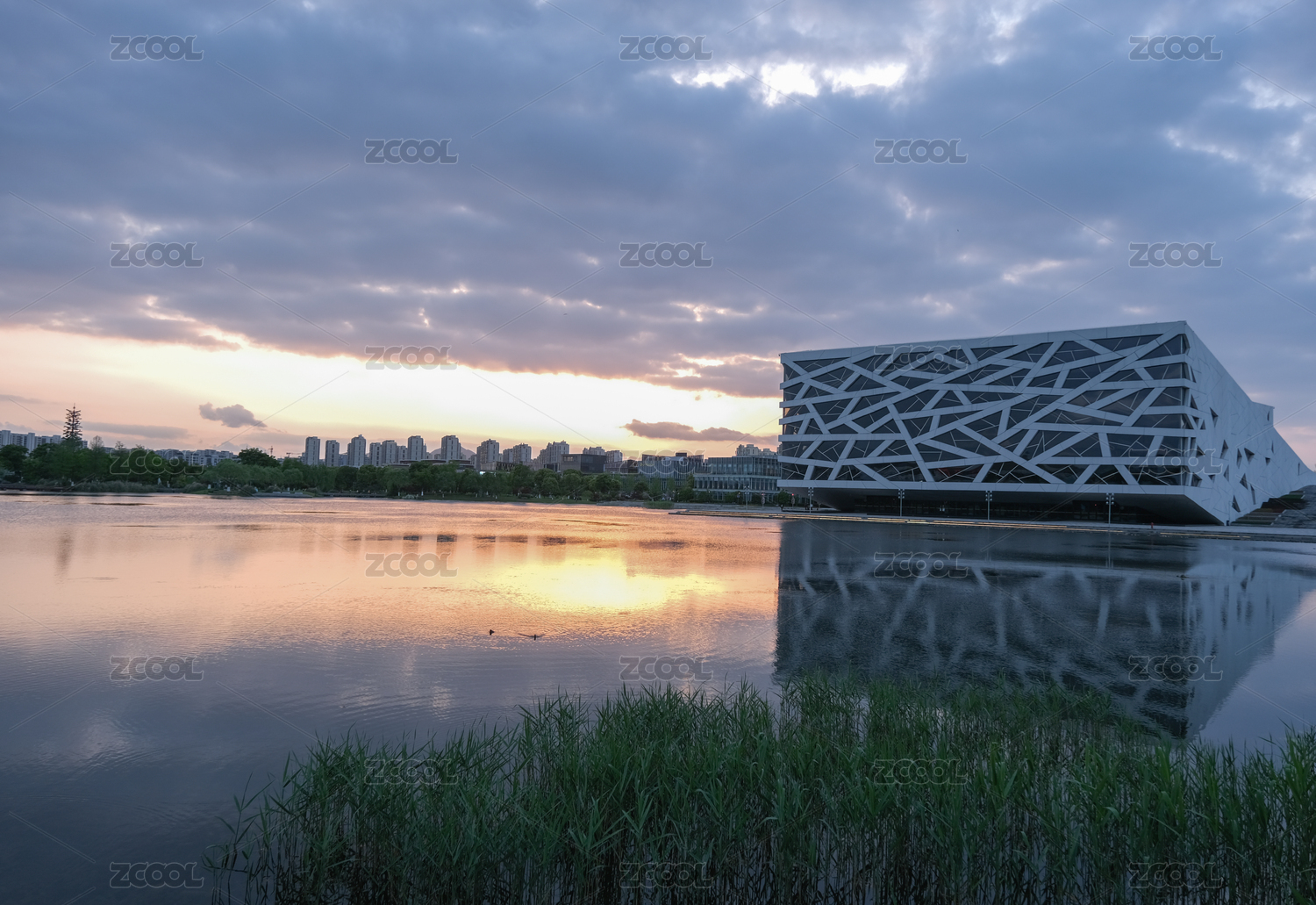 黄昏时的湖边大剧院