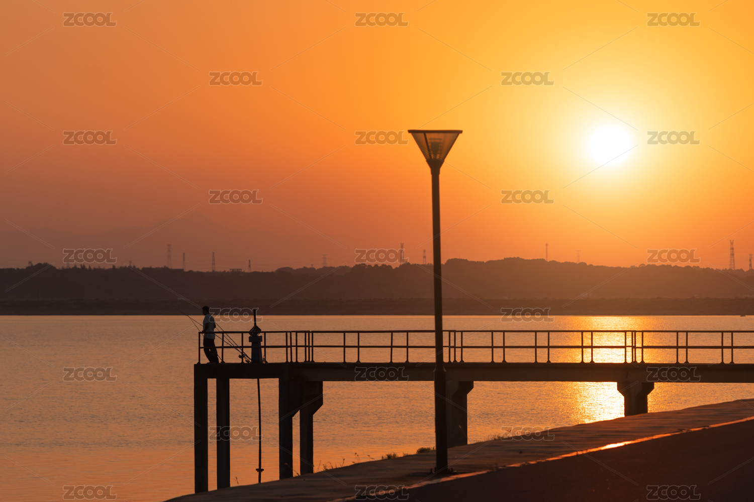 湖边落日