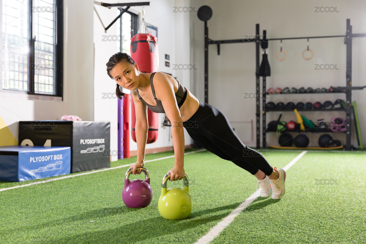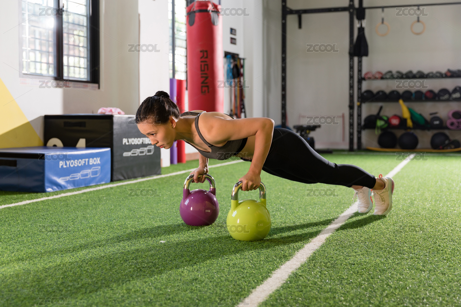 健身房女性壶铃训练