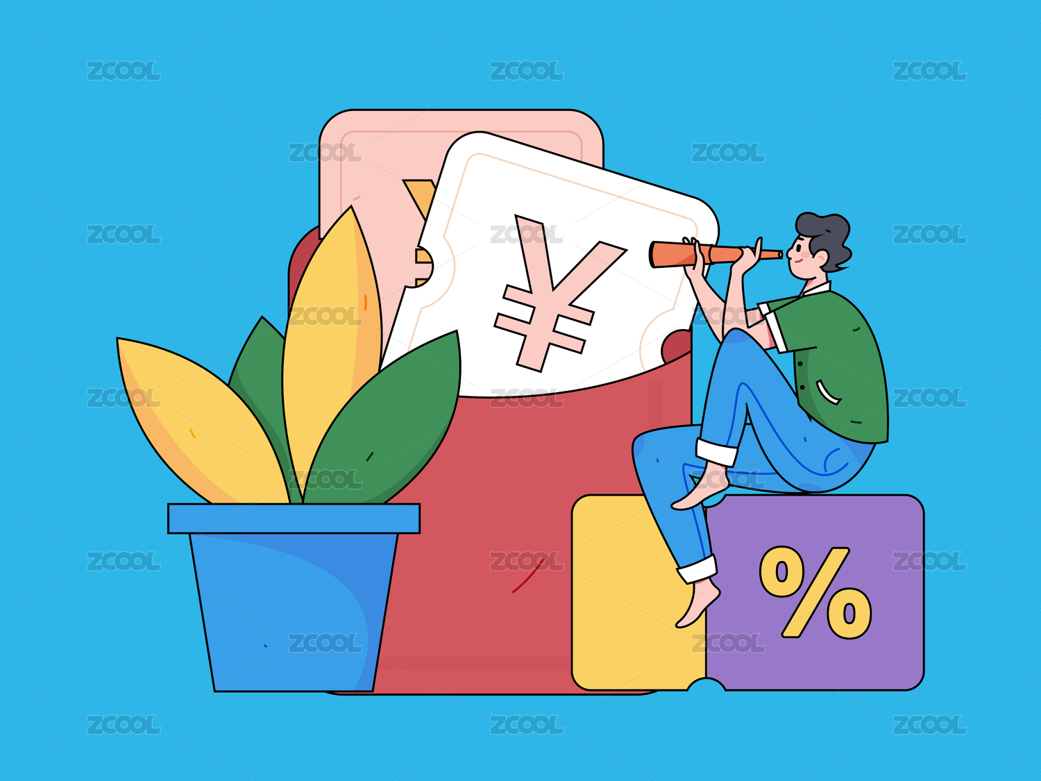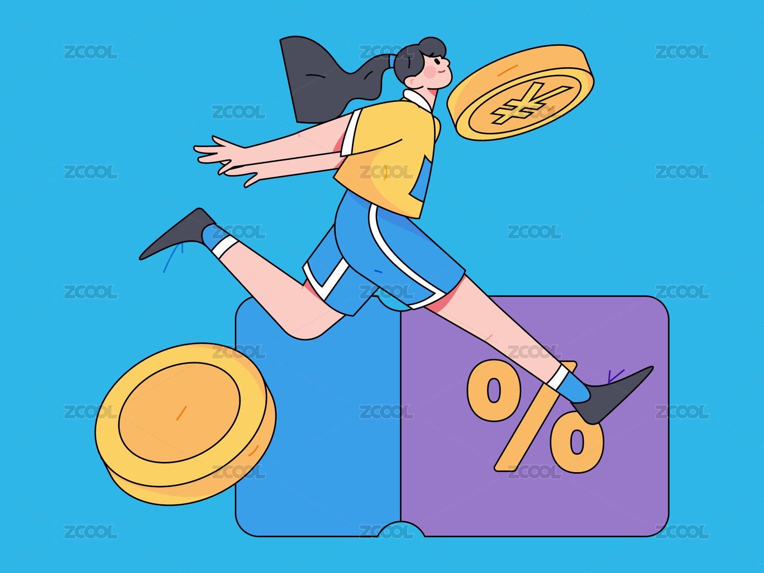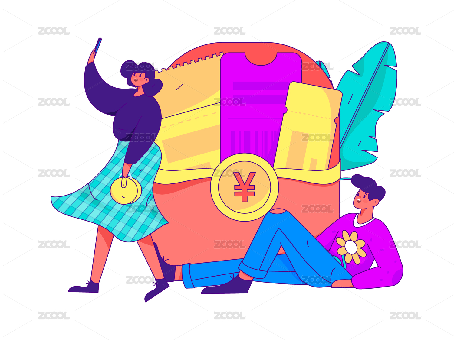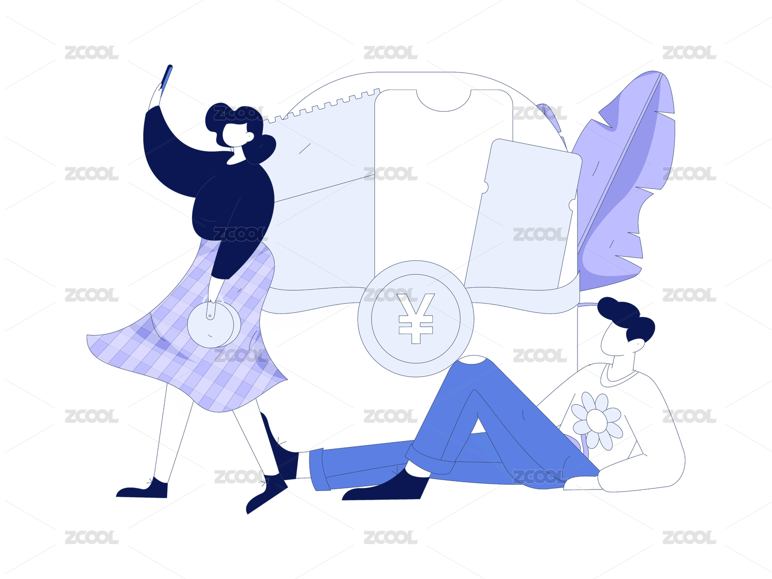 领取优惠券购物的人-带线条