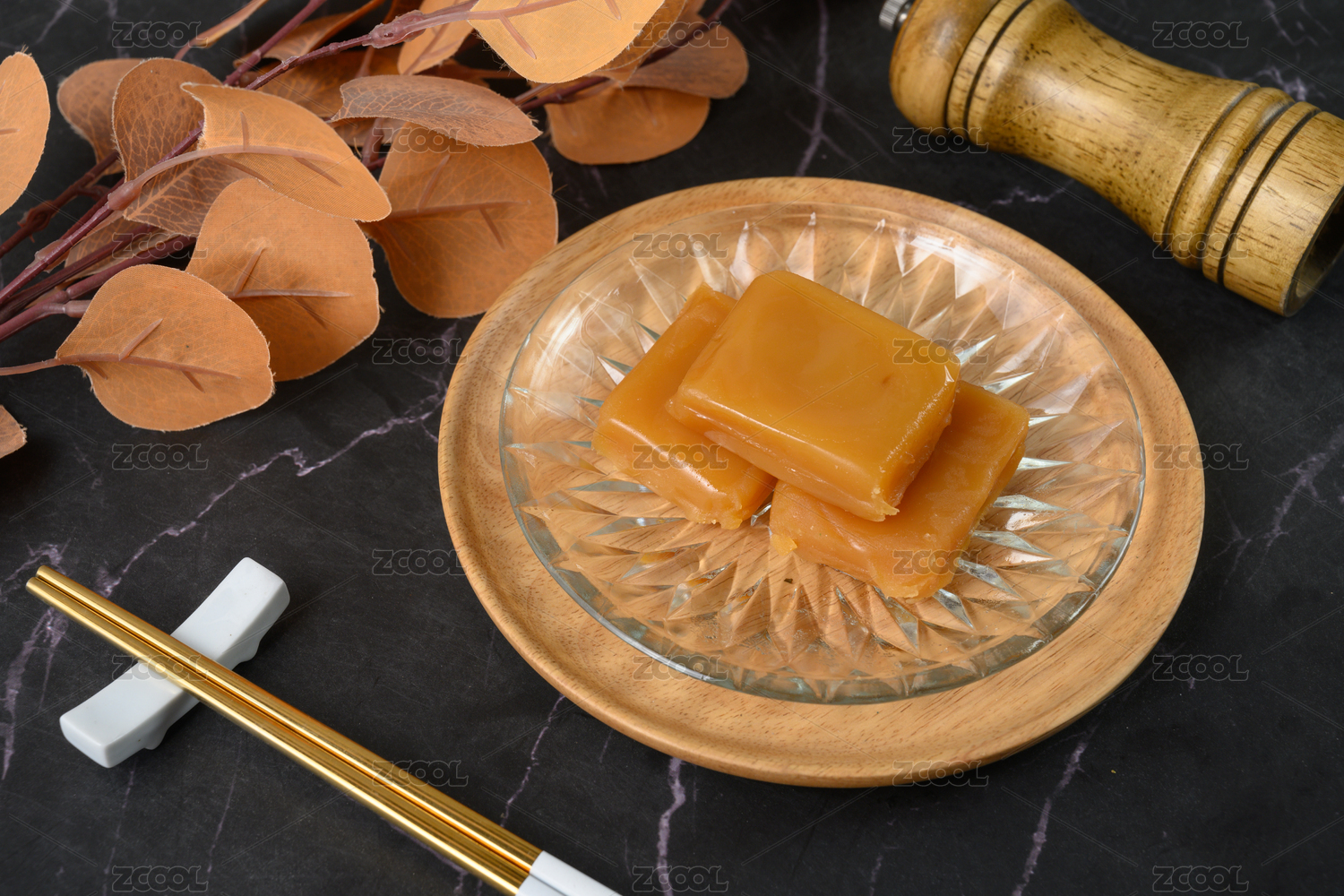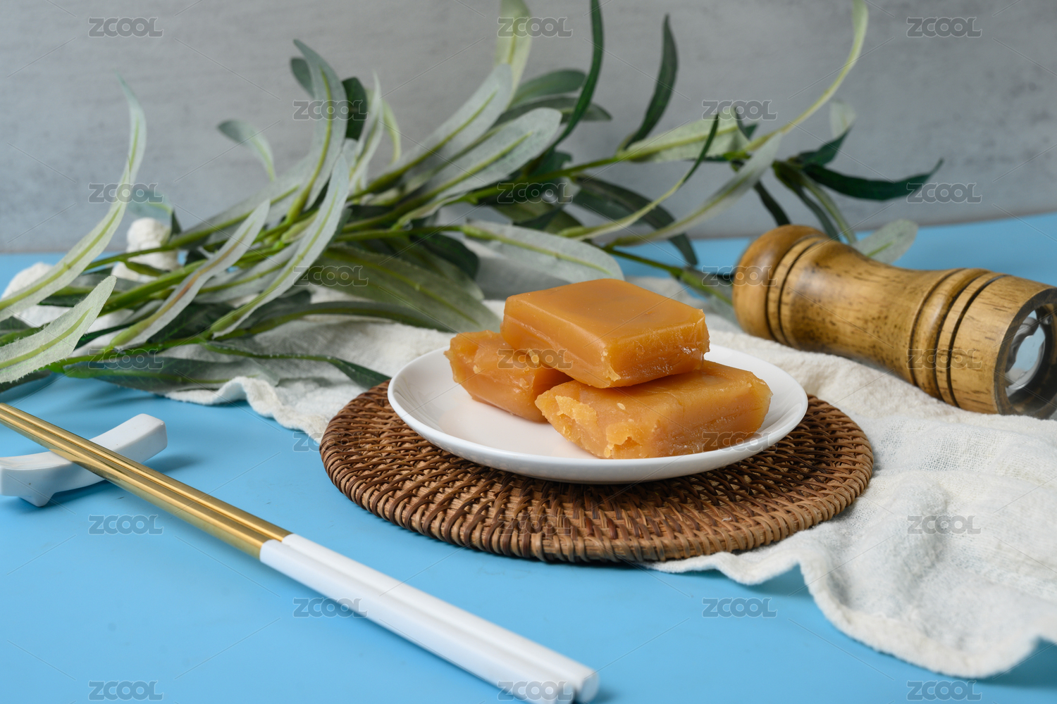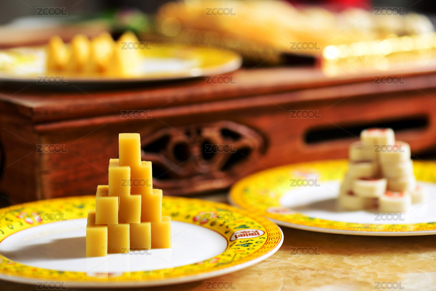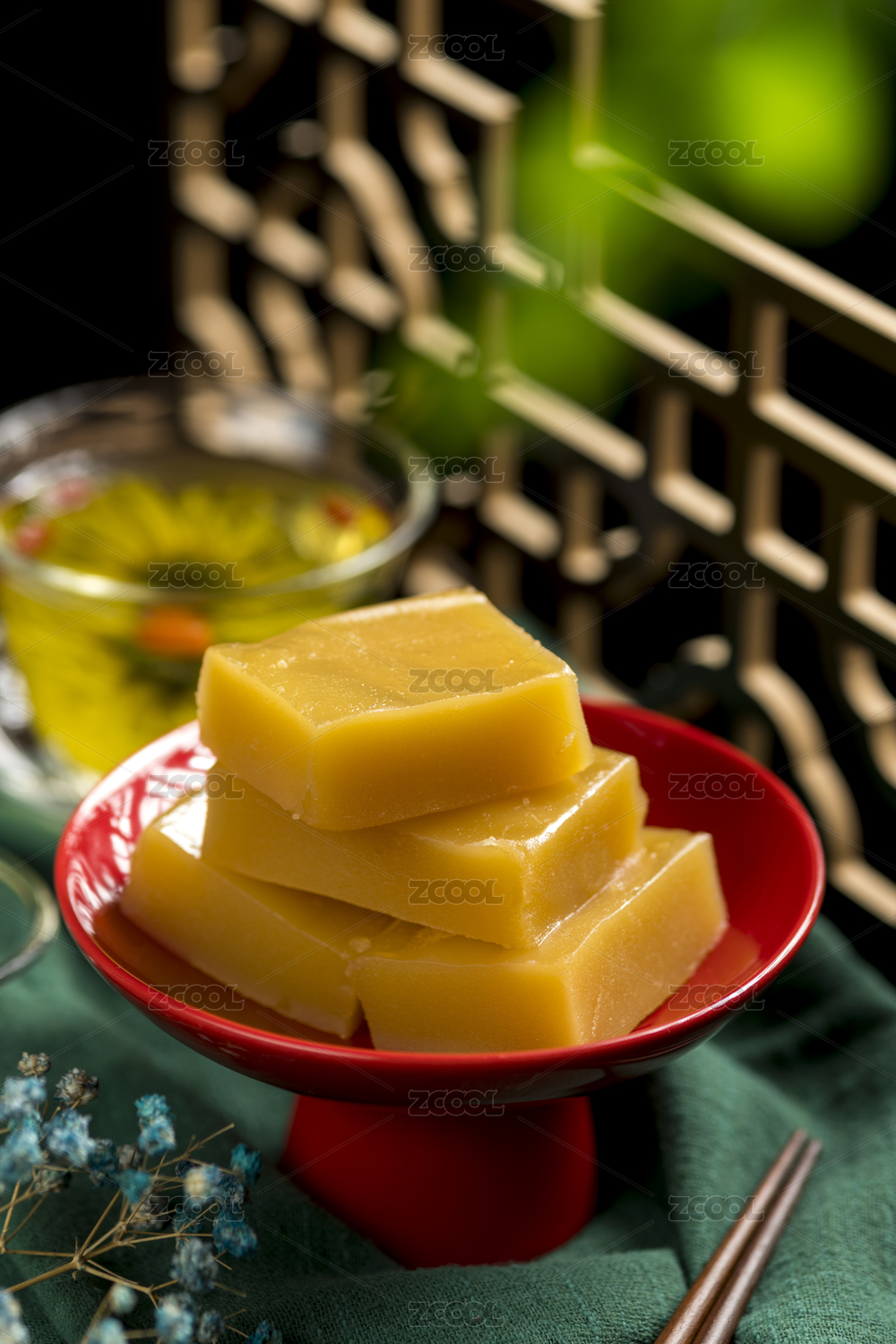 中餐厅里桌子上美味的北京小吃豌豆黄