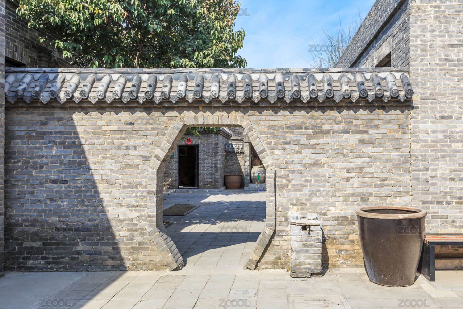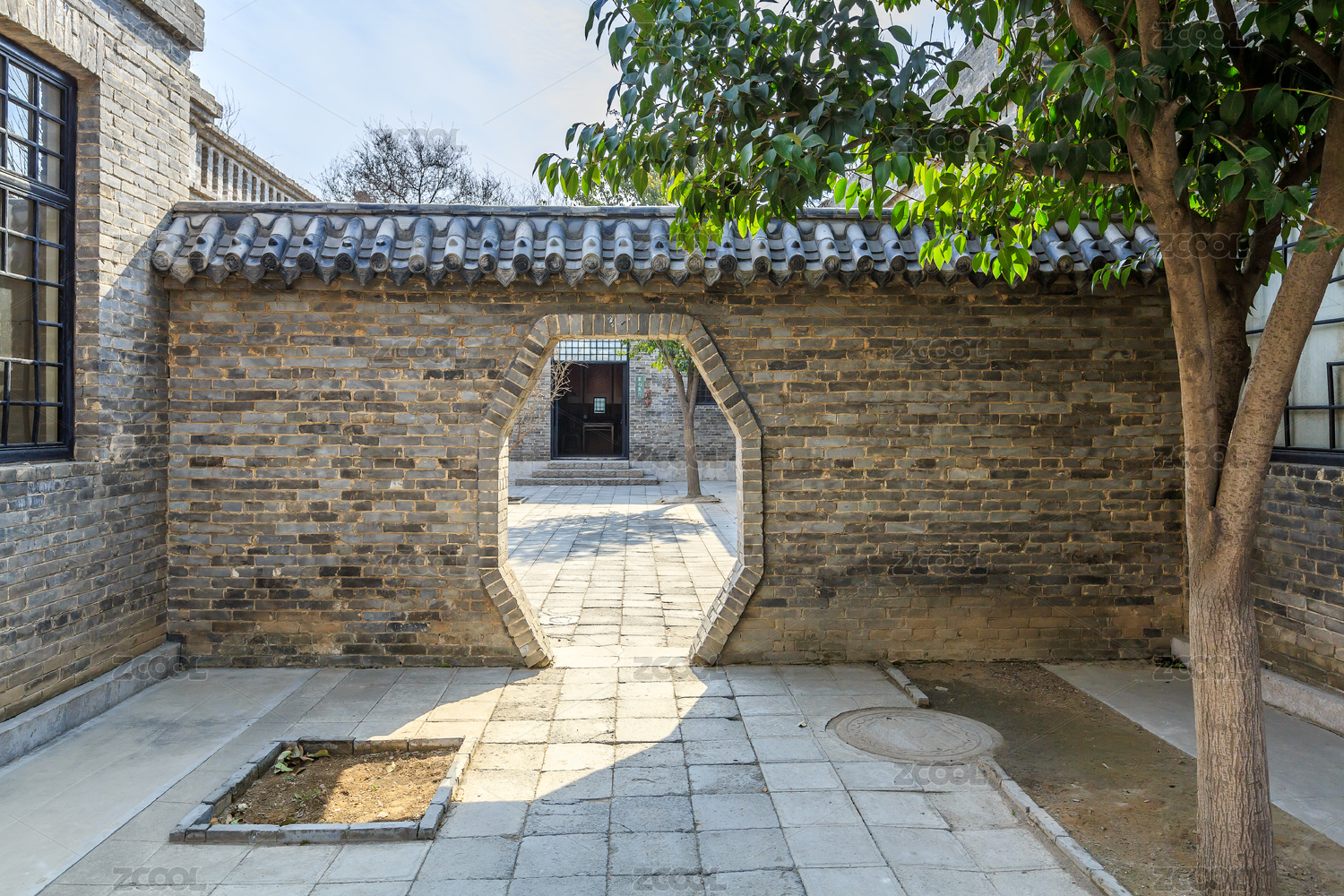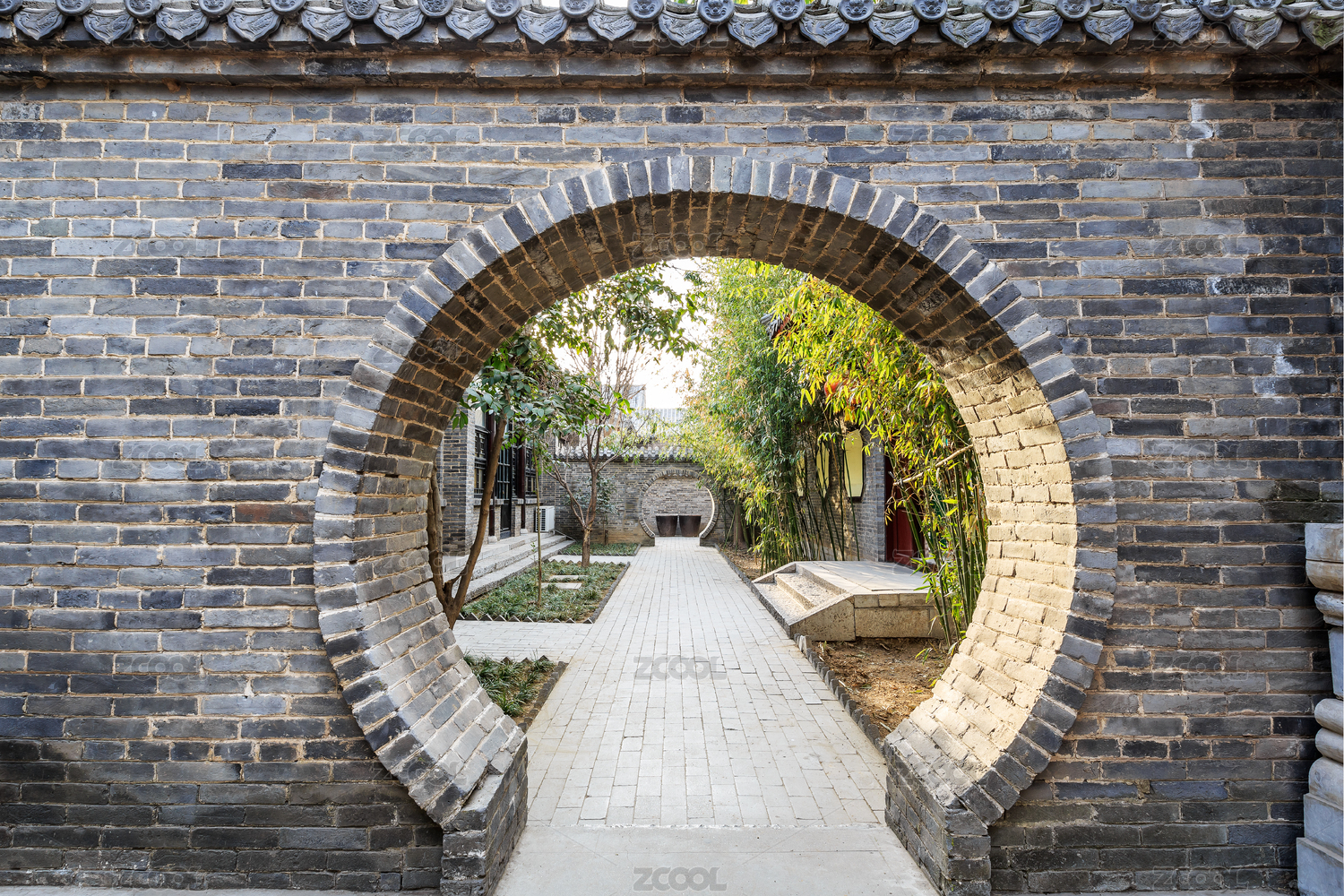东阿阿胶城白家大院内园林月门