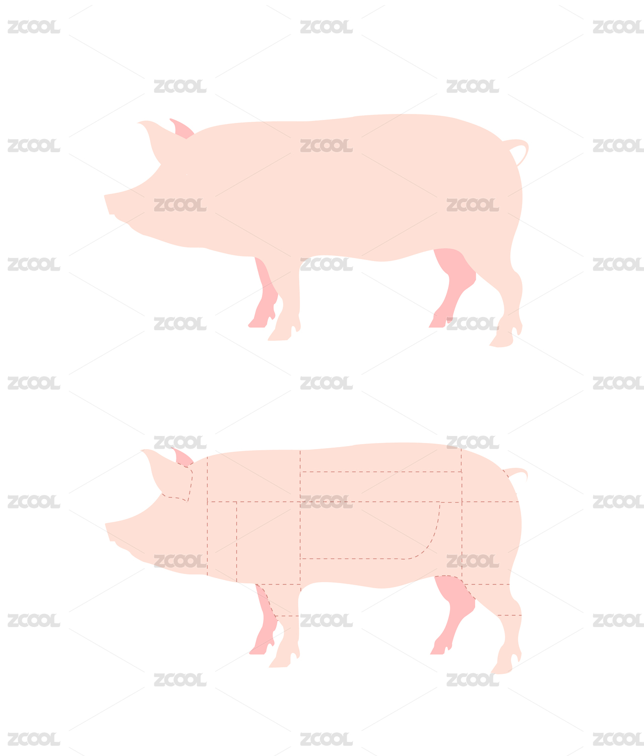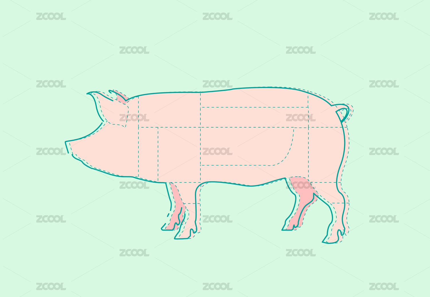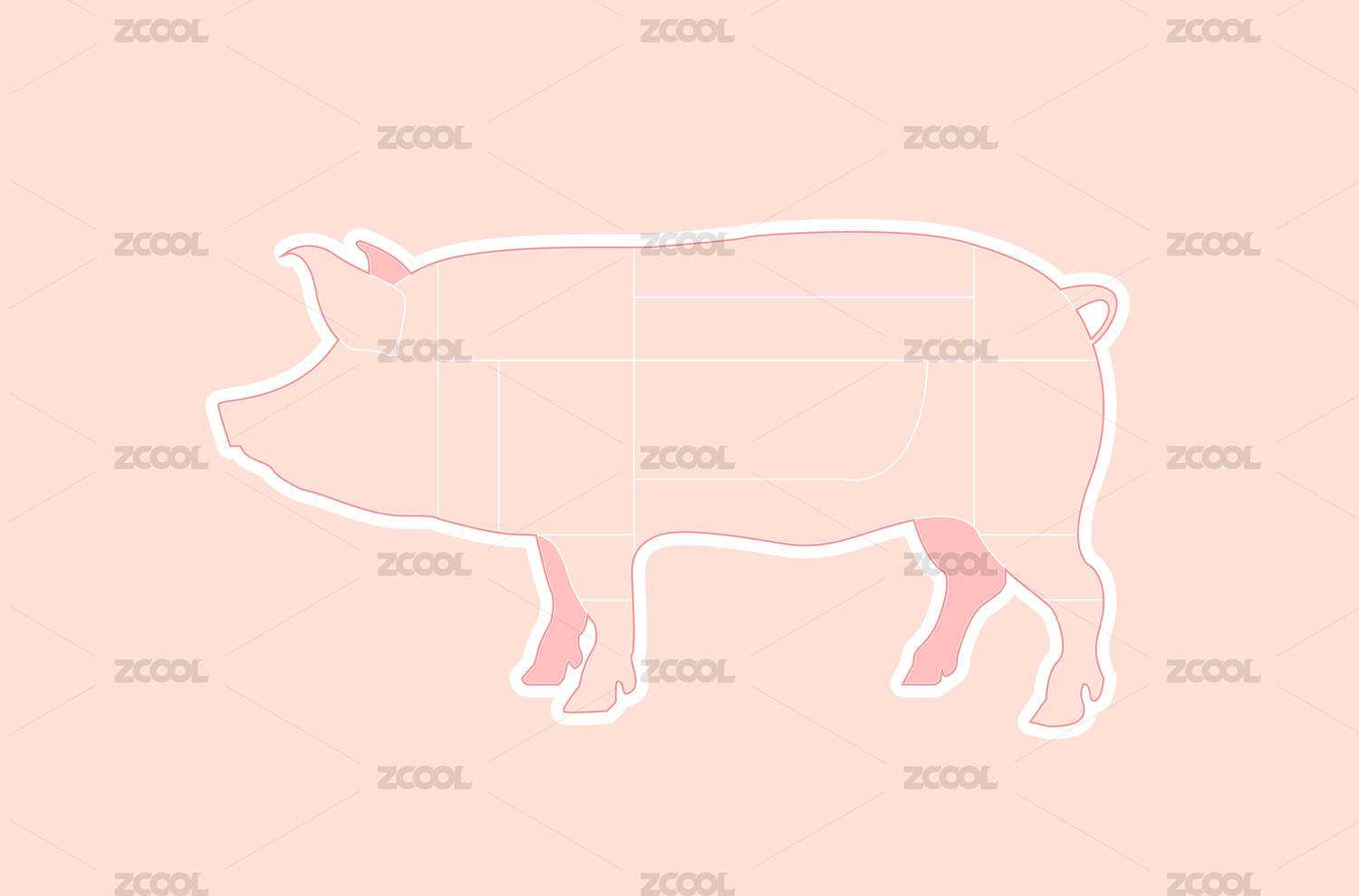 猪肉分割部位矢量插画设计素材
