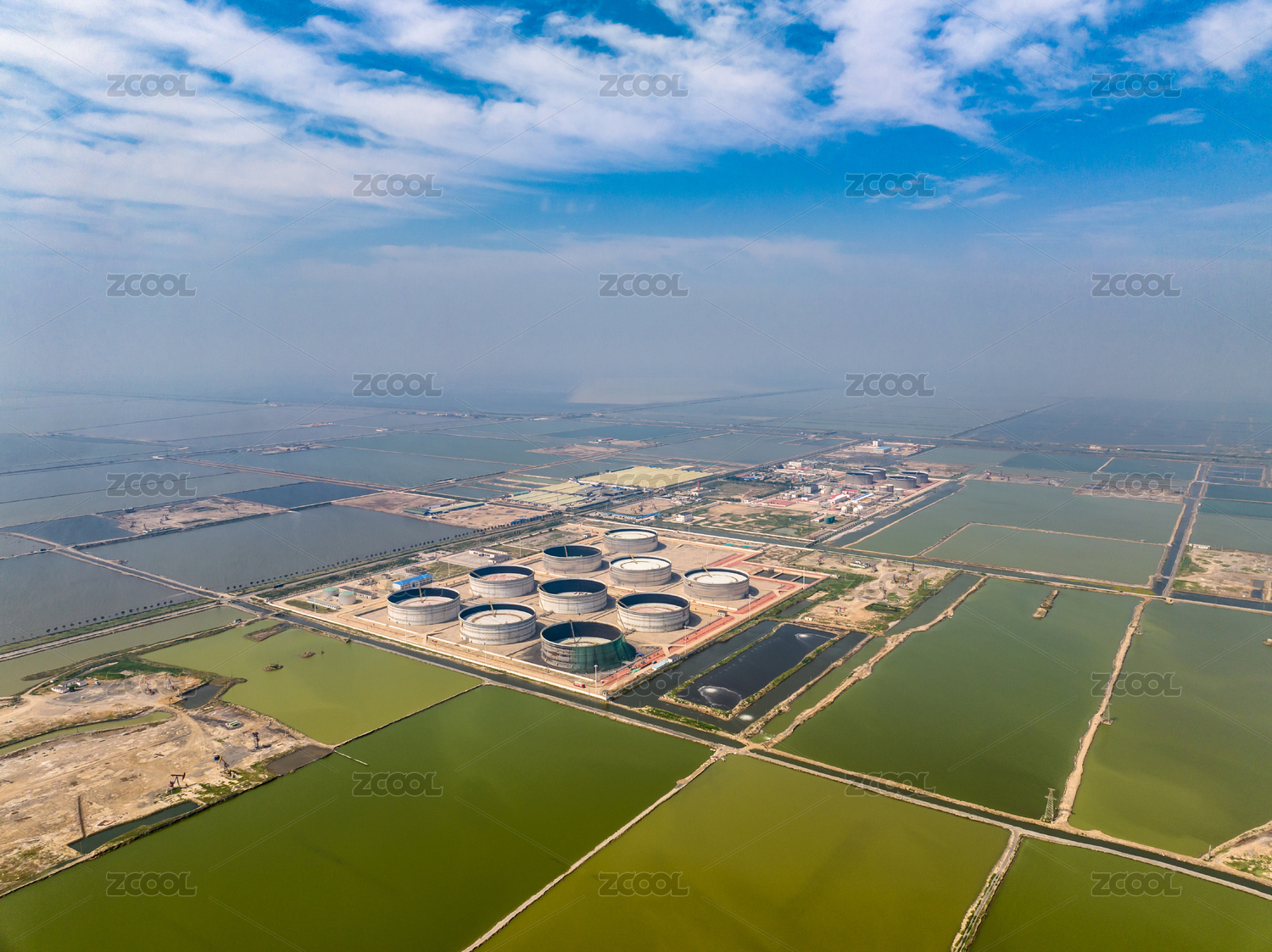 河北唐山曹妃甸大型储油罐设施鸟瞰全景