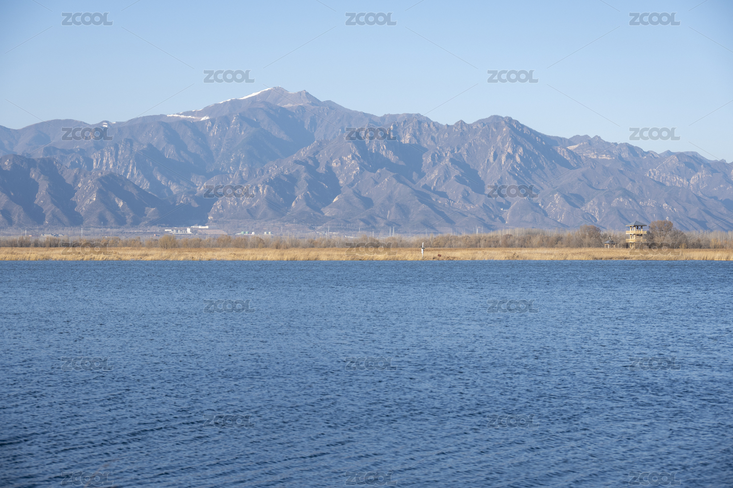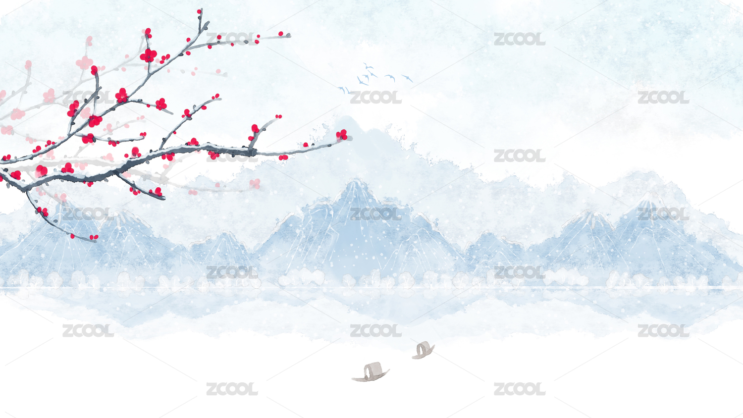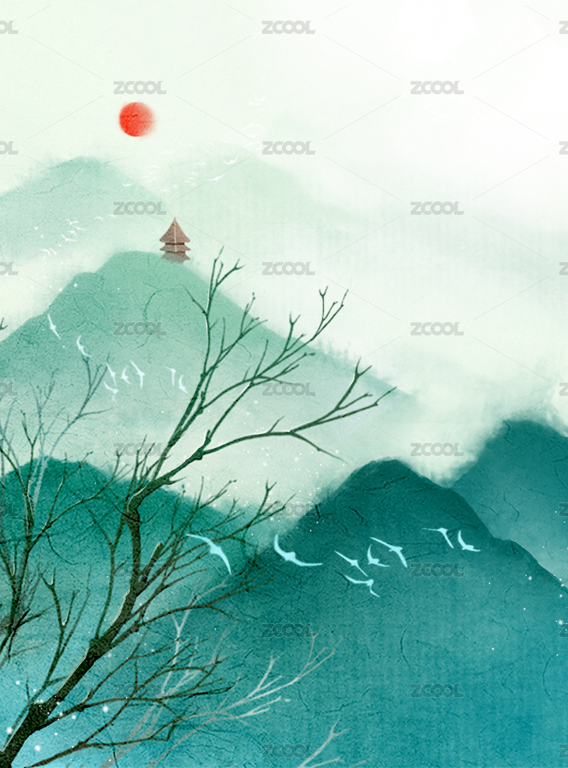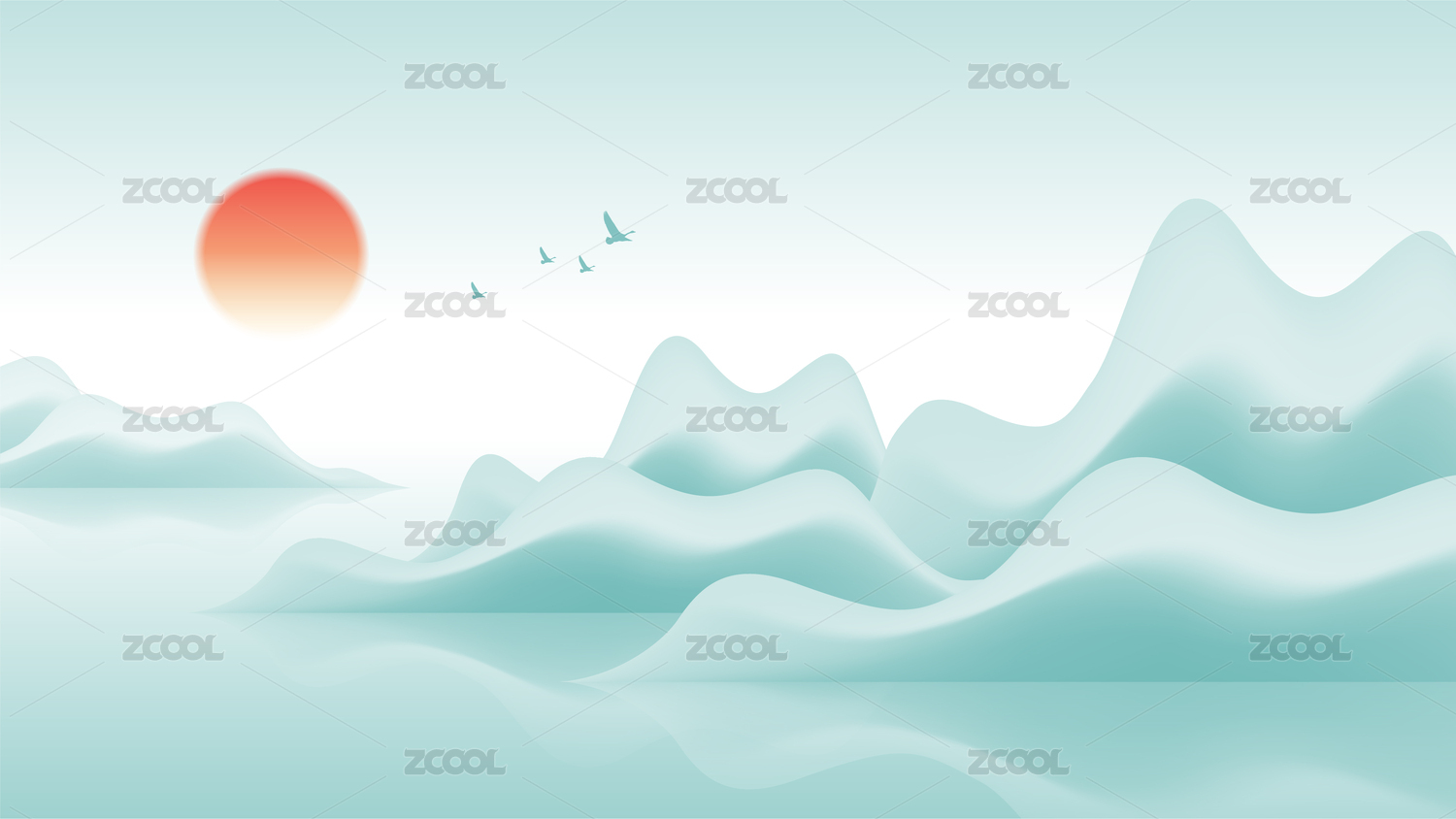 手绘小清新春夏节气水彩场景芦苇远山帆船