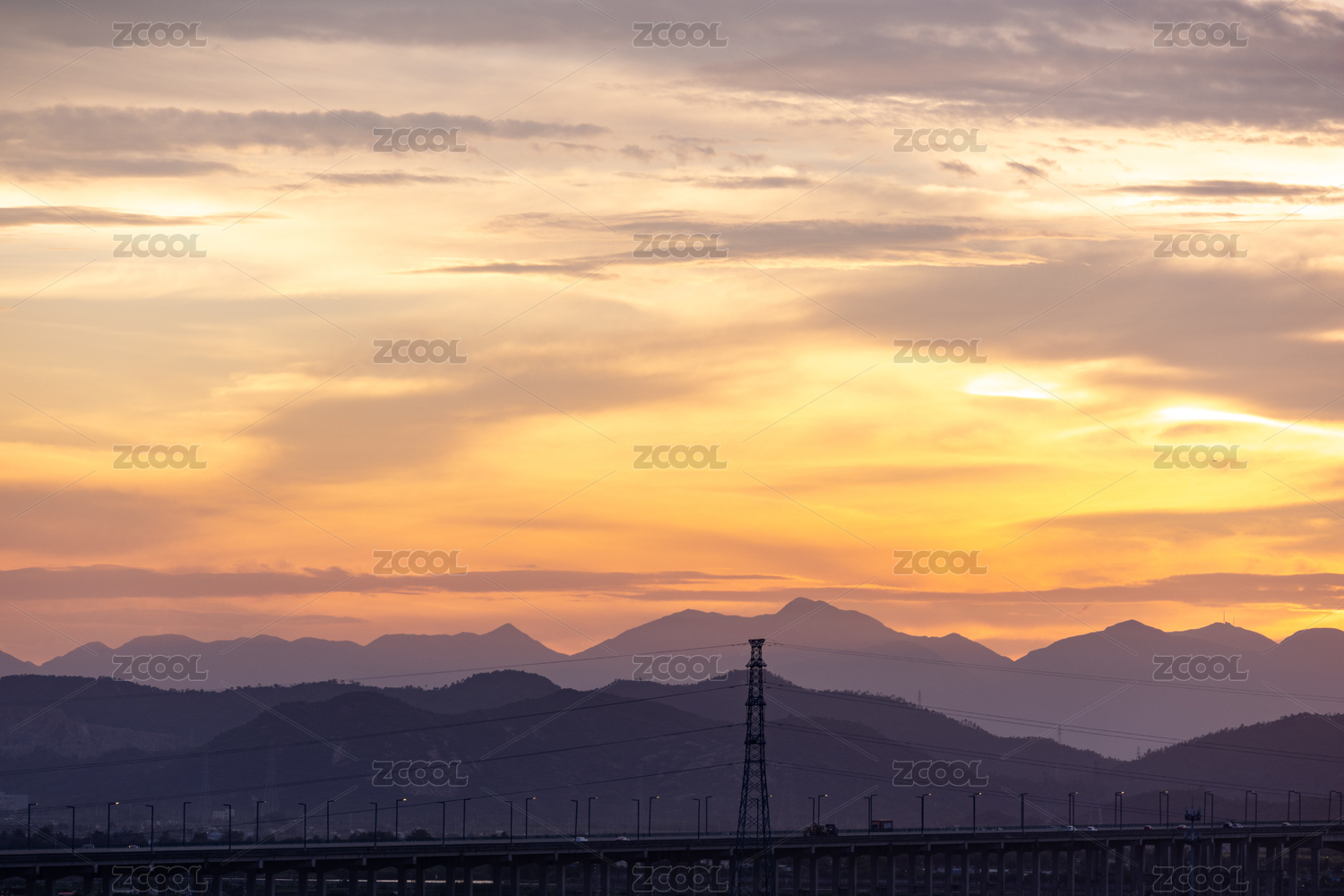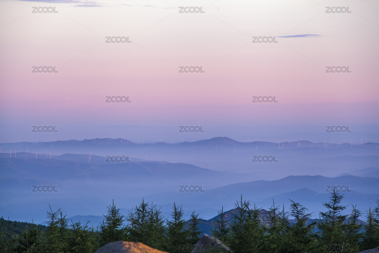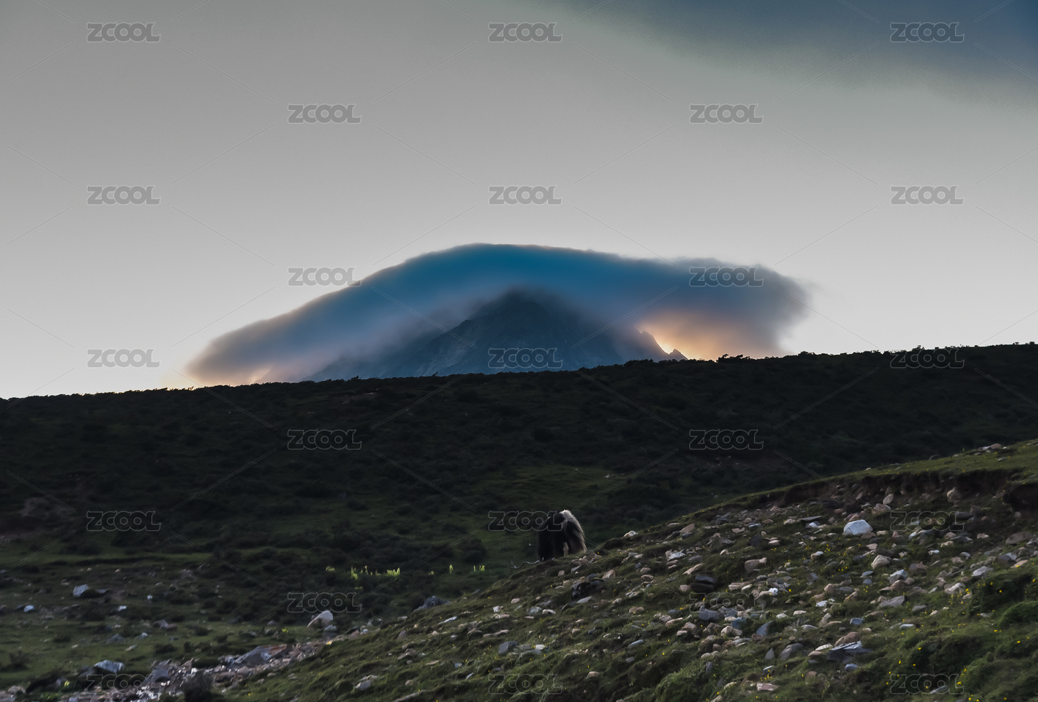 中国四川甘孜藏族自治高原暮色下的远山云海